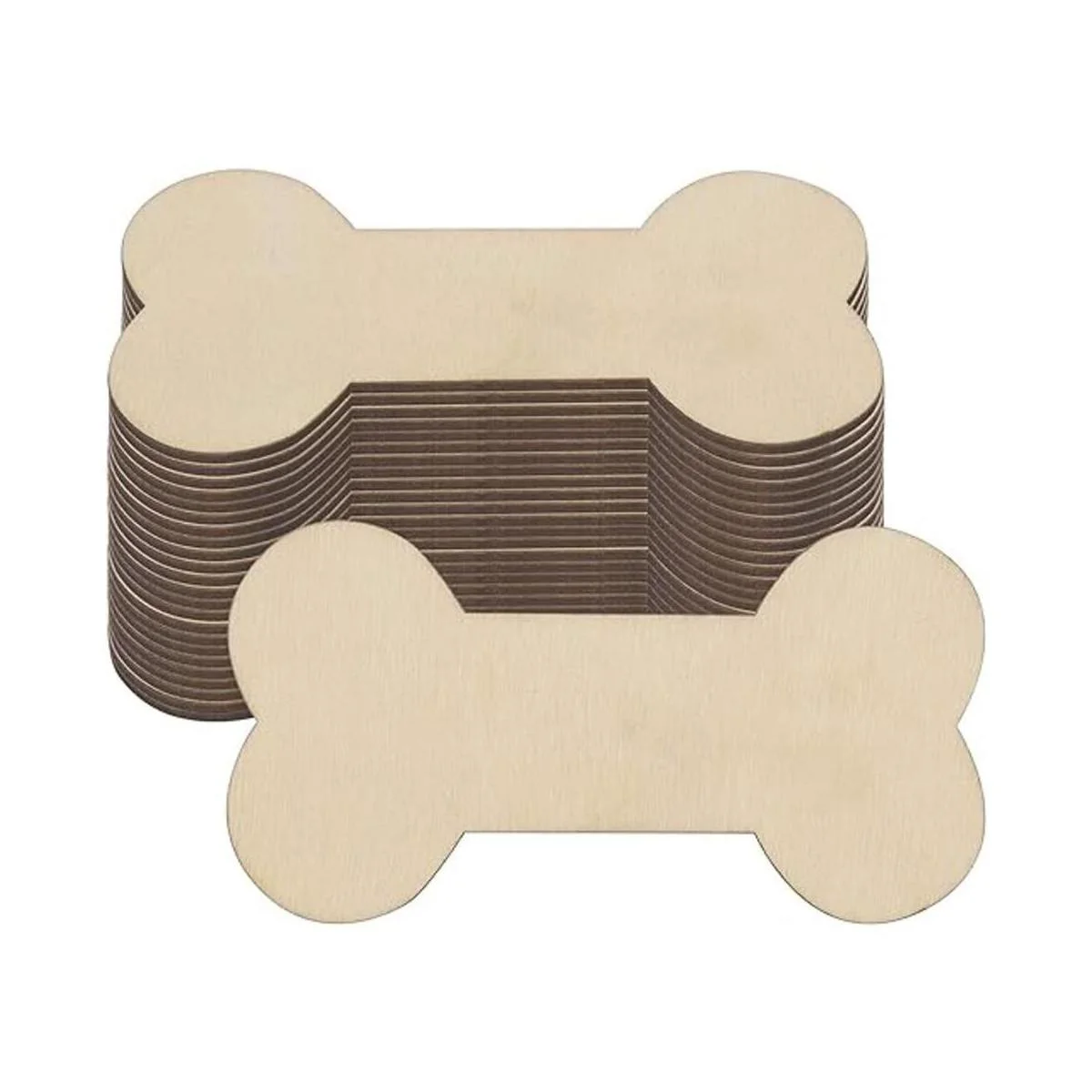 Bonito diseño: adornos de madera con forma de hueso, bonitos y divertidos. Perfecto para ser decorado con manchas, tintas, pintura y adornos.