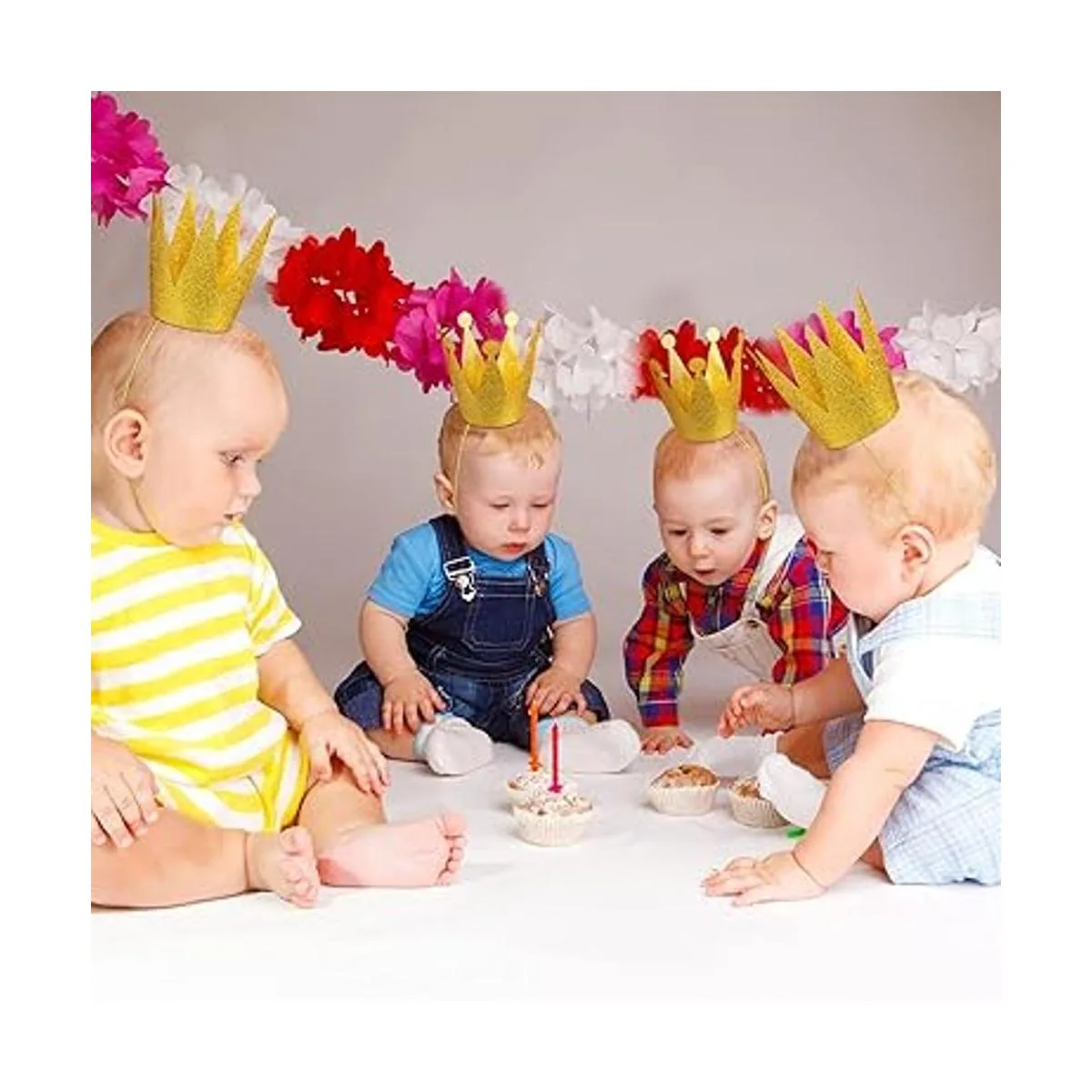 24 sombreros de corona dorados, coronas de papel para niños, sombreros de corona de fiesta dorada para decoración de cumpleaños, boda, celebración
