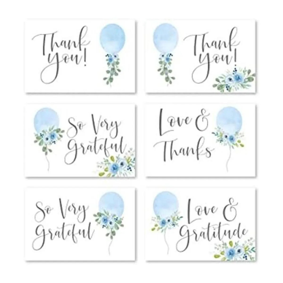 24 tarjetas de agradecimiento con globos azules para baby shower, con sobres, notas de agradecimiento para niños, 4 x 6 pulgadas, tarjeta de agradecimiento para invitados, paquete de invitados para fiestas, cumpleaños, niñas y niños, bonita acuarela para eventos de jardín