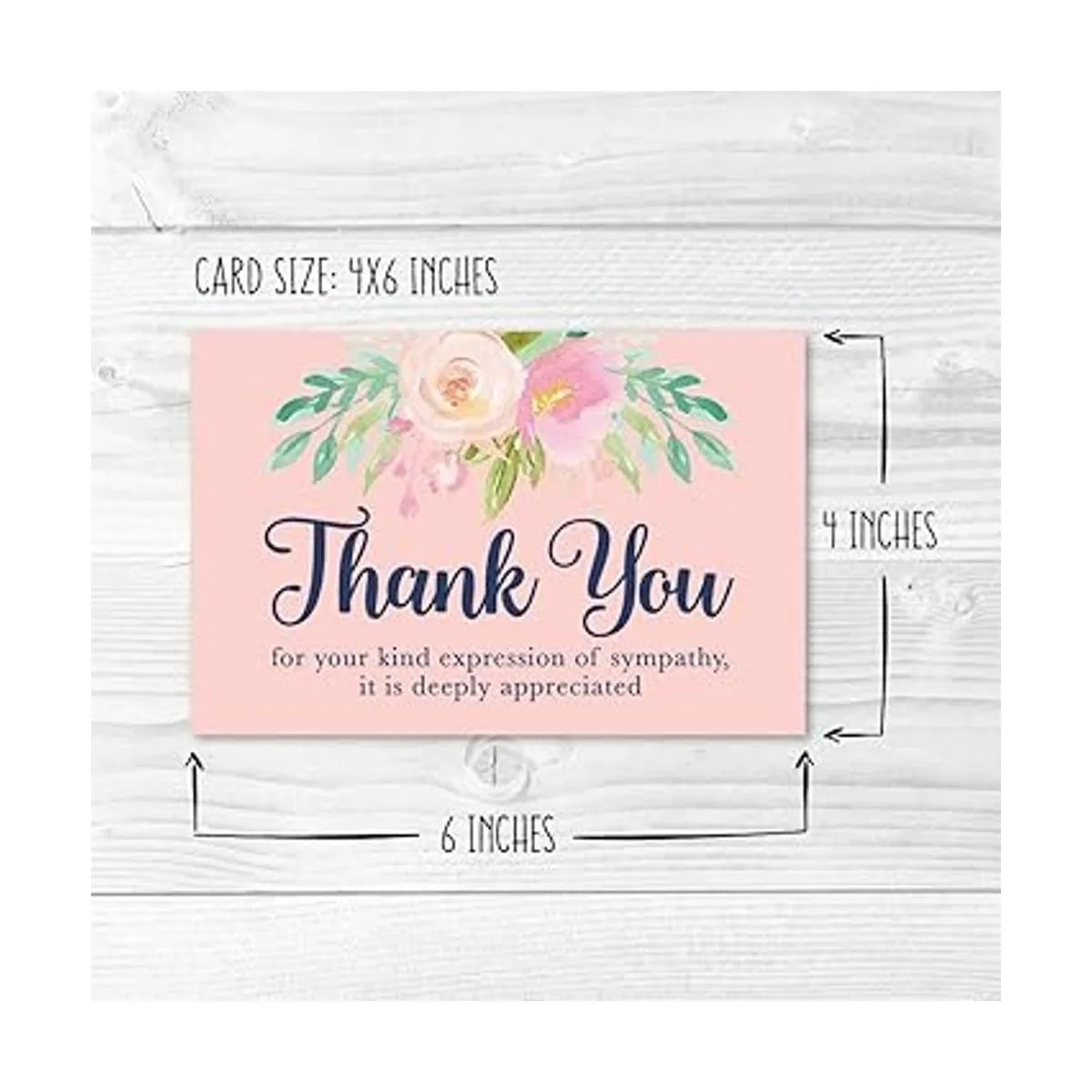 24 tarjetas de agradecimiento de simpatía floral de la marina con sobres, nota de agradecimiento de duelo, suministros de agradecimiento de condolencia, flores azules personalizadas religiosas militares conmemorativos con mensajes.