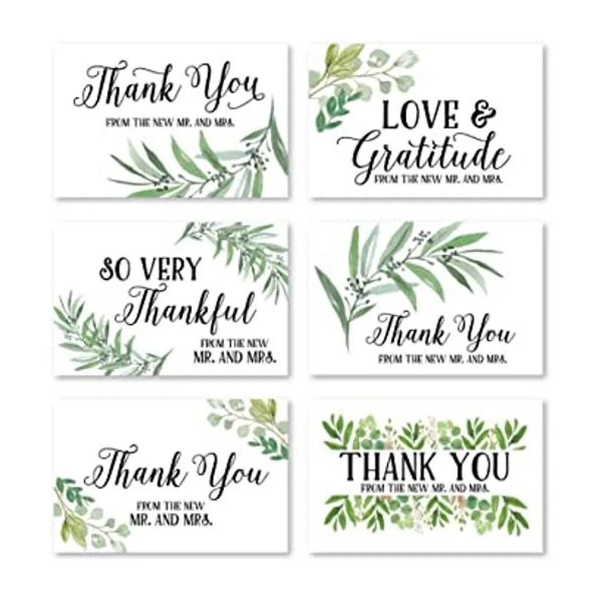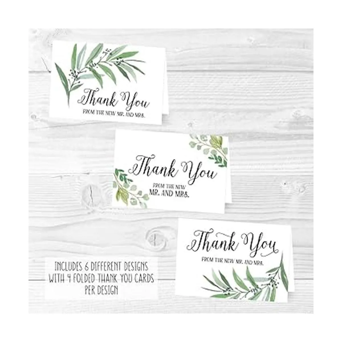 24 tarjetas de agradecimiento para boda con sobres, elegante para despedida de soltera, notas de agradecimiento de Mr. Mrs. Newlywed Boho Garden Gratitud Supplies, 4 x 6 personalizadas a granel papelería
