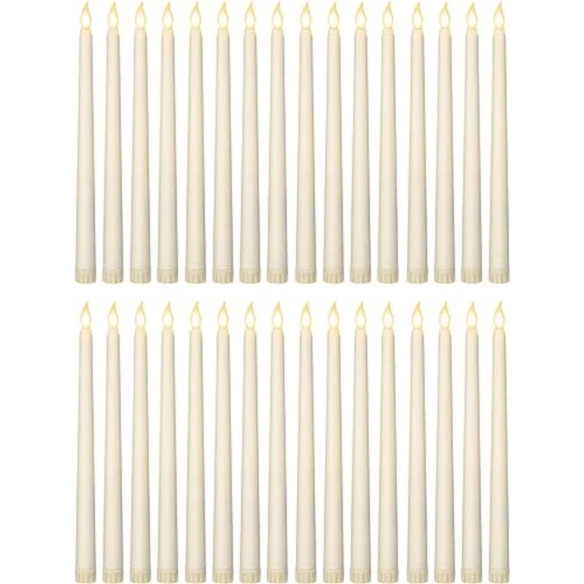 24 velas cónicas sin llama, luces LED de cera sintética, velas LED de cera sintética, velas LED que funcionan con pilas, velas cónicas parpadeantes para cumpleaños, Navidad, boda, fiesta marfil