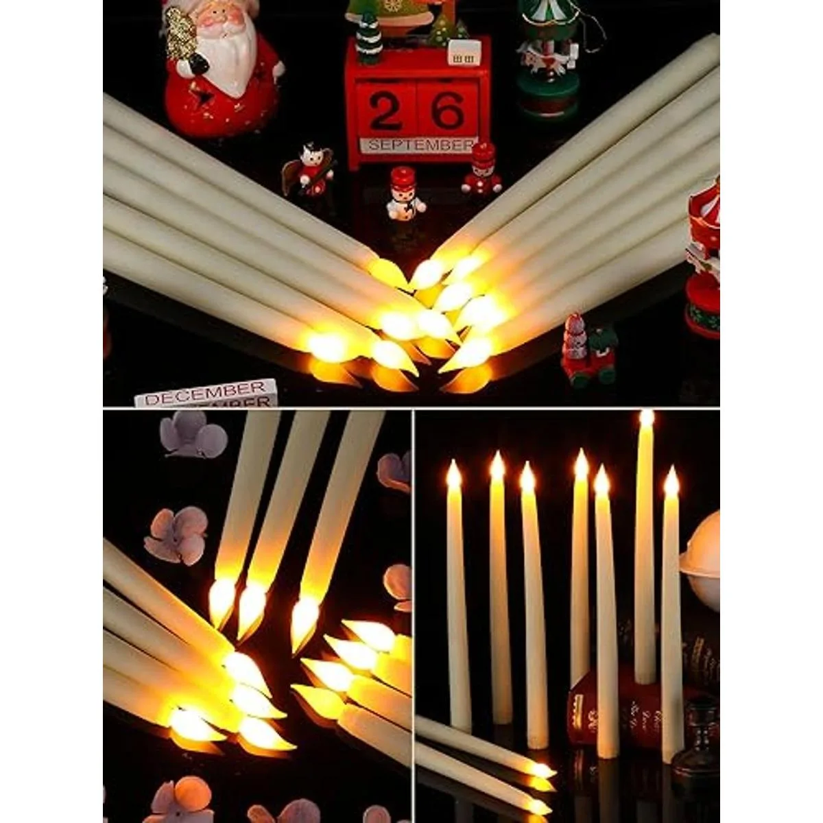 Amplias aplicaciones: estas velas cónicas funcionan con pilas son elegantes y delicadas, ideales para varios tipos de fiestas, como cumpleaños, propuestas, bodas, Navidad, aniversario, Acción de Gracias, Año Nuevo y más, añadiendo un ambiente cálido