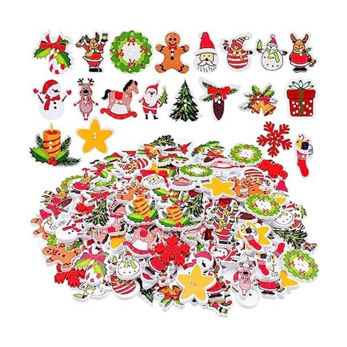 240 botones de madera de Navidad, coloridos botones de costura, varios botones de manualidades de Navidad, calcetines de Navidad, botones decorativos para proyectos de costura hechos a mano, tamaños y estilos mixtos