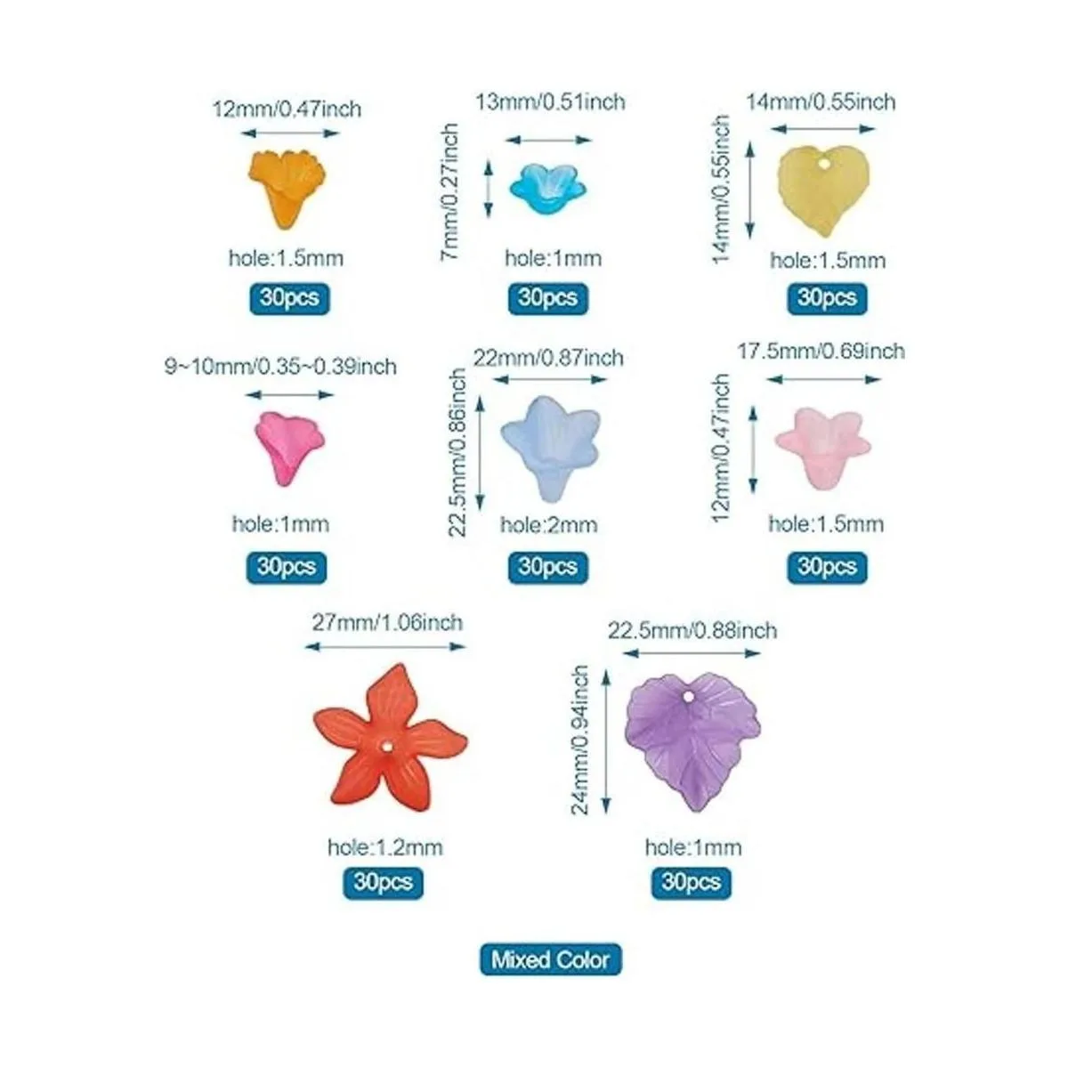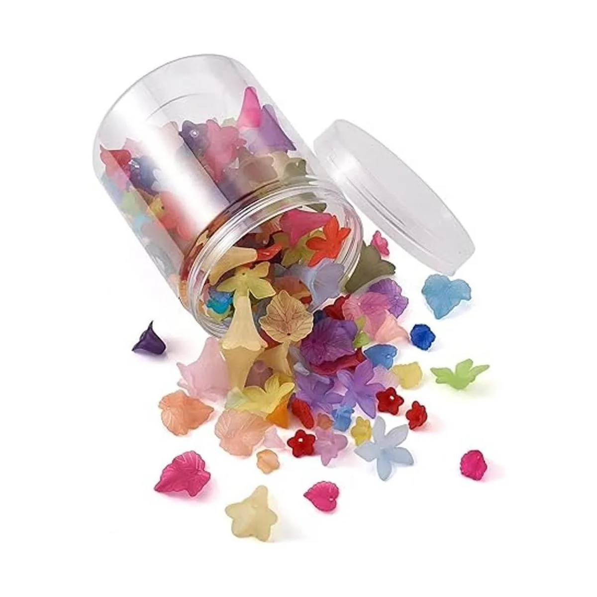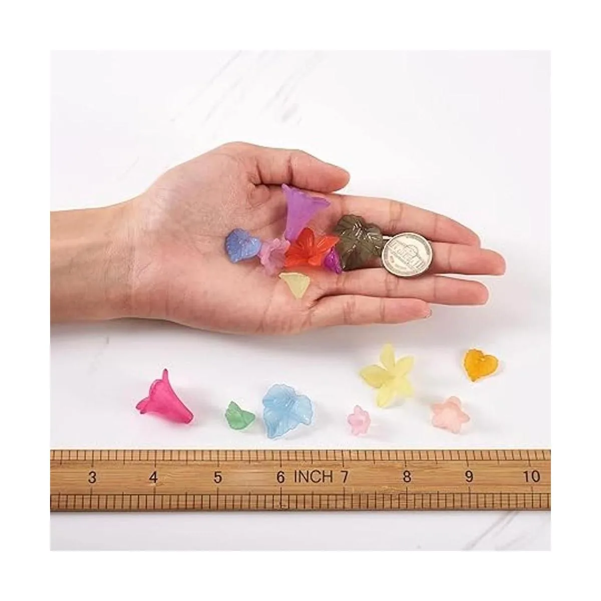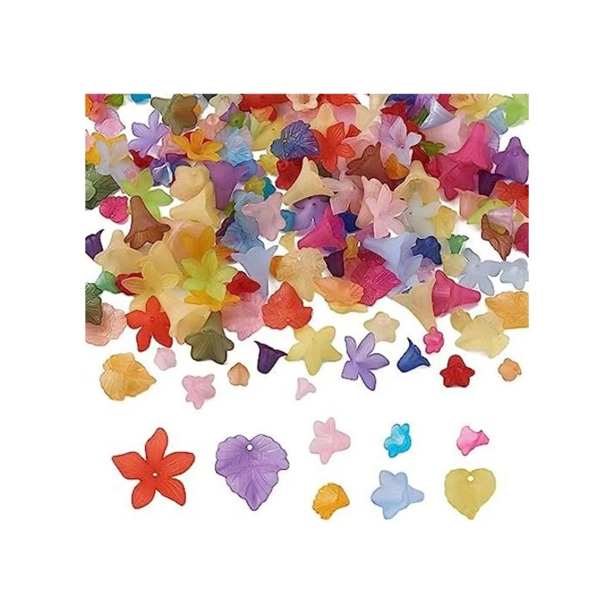 240 cuentas acrílicas esmeriladas transparentes de flores, formas mixtas, hojas de flores, cuentas sueltas para hacer joyas de bricolaje color mezclado