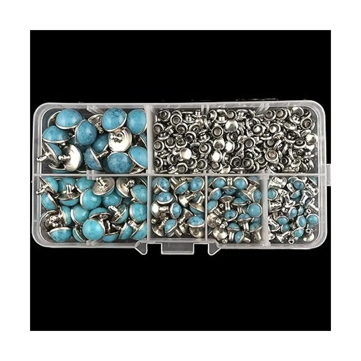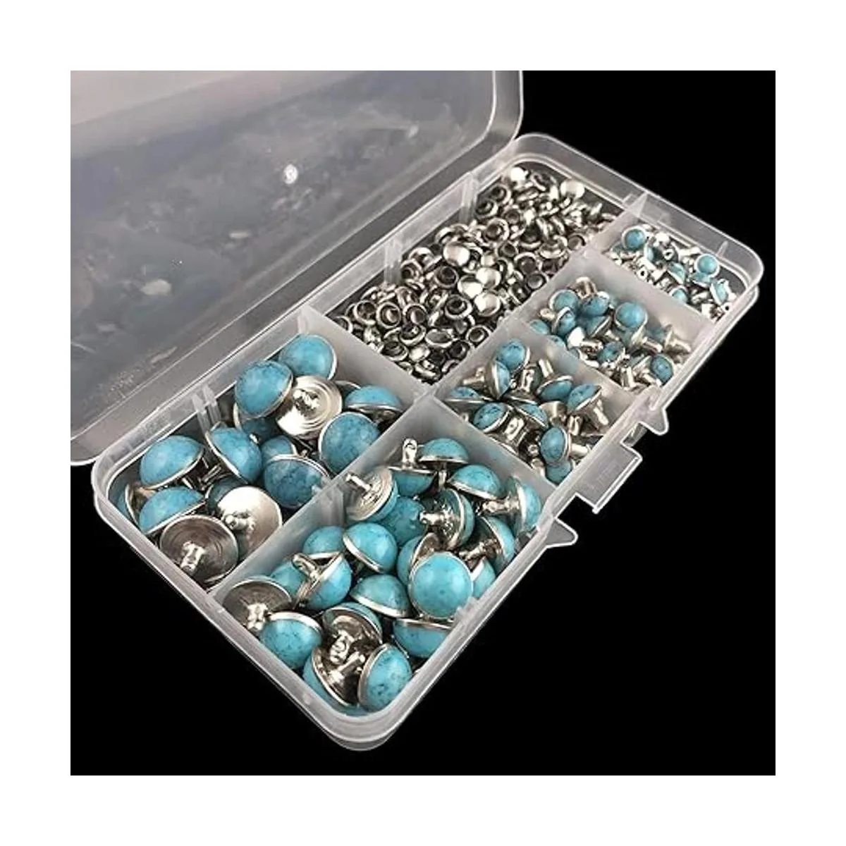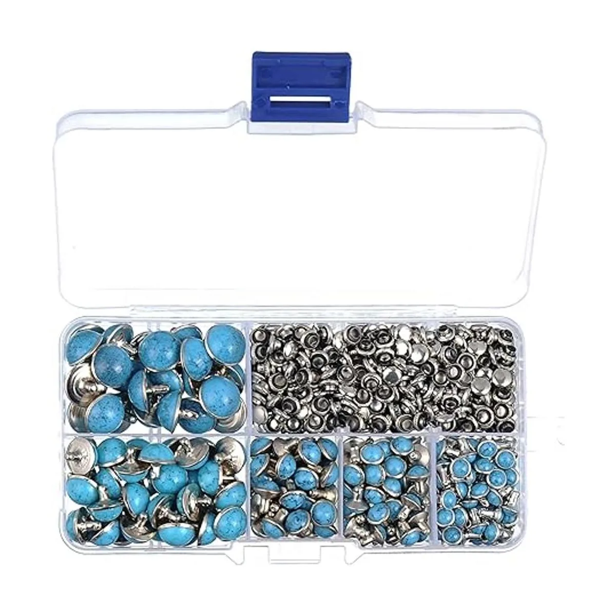 Contenido del paquete: 240 juegos de remaches azul turquesa con tapa de remache Viene con caja de plástico