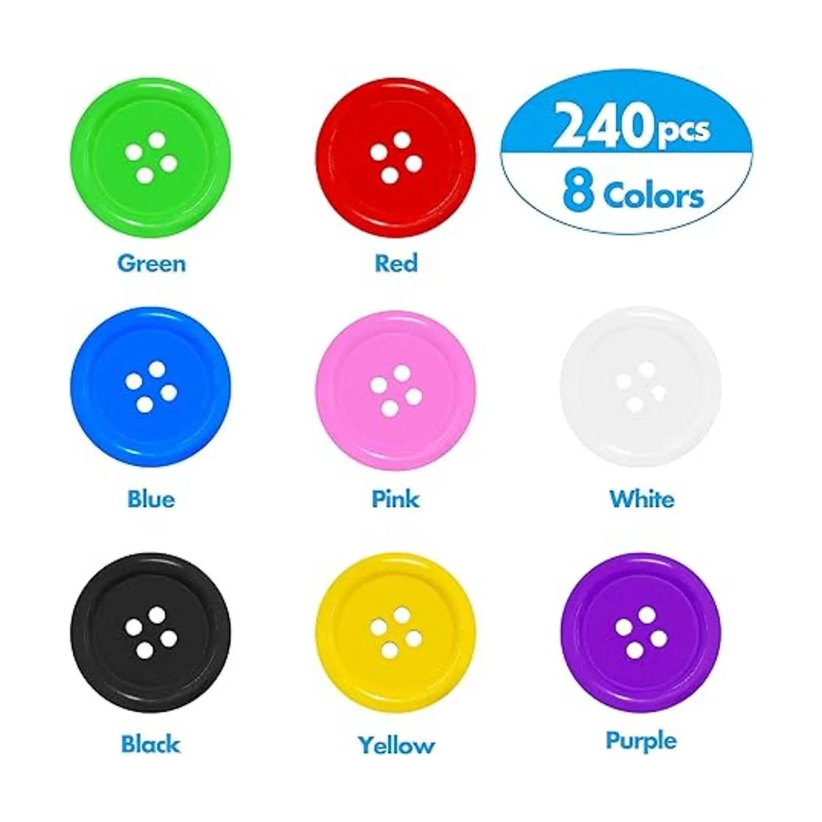 Estilo clásico: 240 botones de resina duraderos en 8 colores, 4 agujeros con parte trasera plana, fácil maniobra y aplicar en varias superficies. Ya sea costura, tejer, pista, funcionarán muy bien con tela, manualidades y proyectos de bricolaje.
