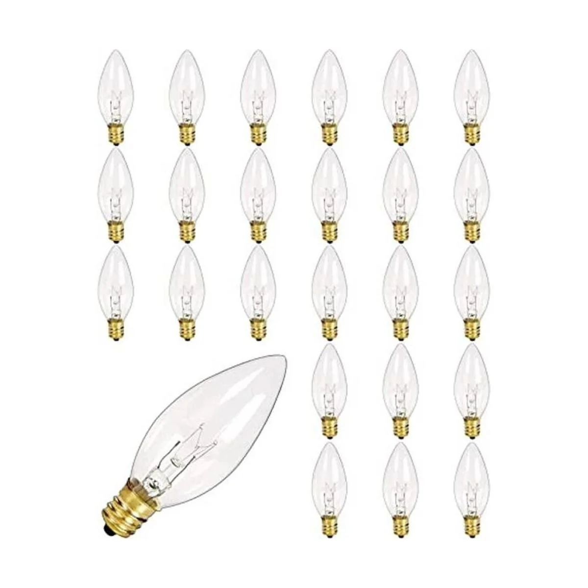 25 bombillas de repuesto transparentes con punta de torpedo, ideales para luces nocturnas, candelabros, lámparas de vela de ventana eléctricas, 7 W, 120 voltios, base de candelabro C7E12