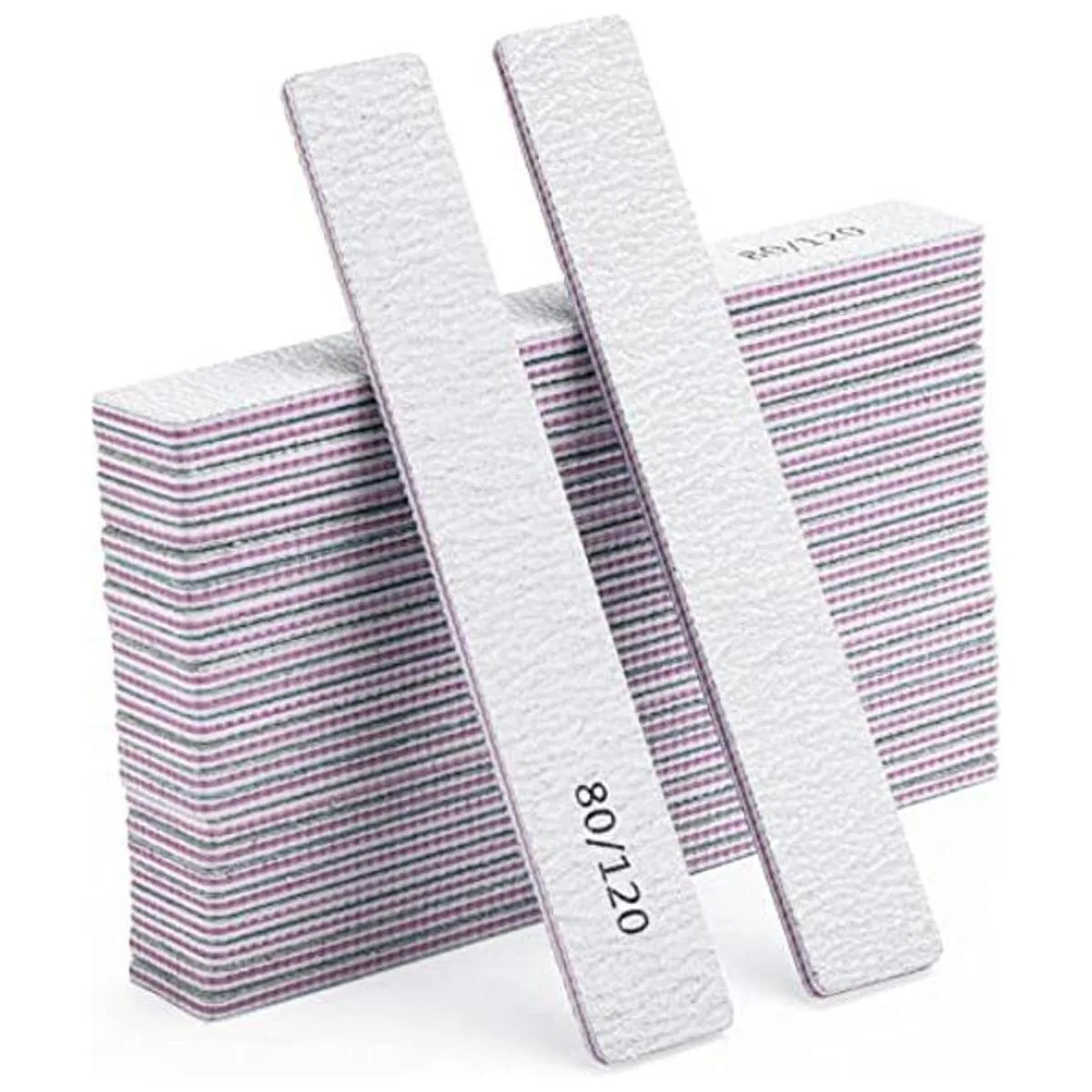 25 limas de uñas para uñas acrílicas de grano 80120, limas de uñas de doble cara, limas de uñas, herramientas de manicura profesionales para salón de belleza en el hogar