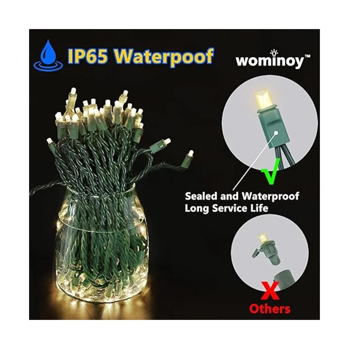 25 pies, 50 unidades de luces LED blancas cálidas, luces de Navidad blancas de grado comercial al aire libre, impermeables, mini tira de luces LED para interiores, cable verde gran angular de 0.197 in, luces de Navidad para árbol, IP65, UL