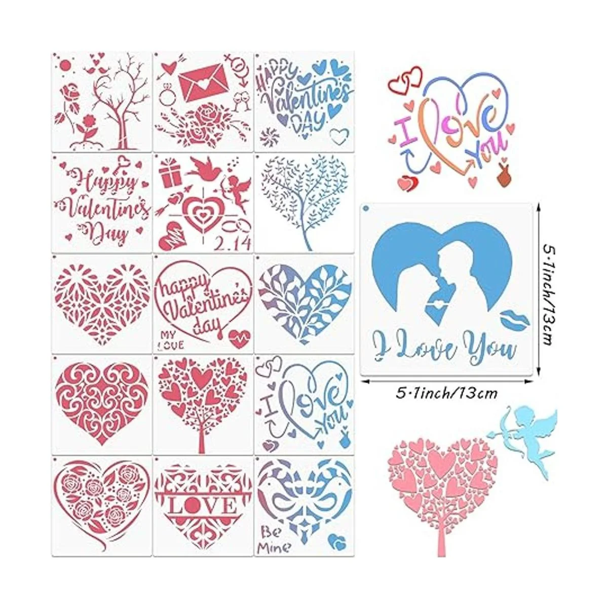 25 plantillas para el día de San Valentín con diseño de árbol de amor, plantillas reutilizables de Mylar con anillo abierto de metal para pintar sobre madera de pared, lienzo, decoración del hogar
