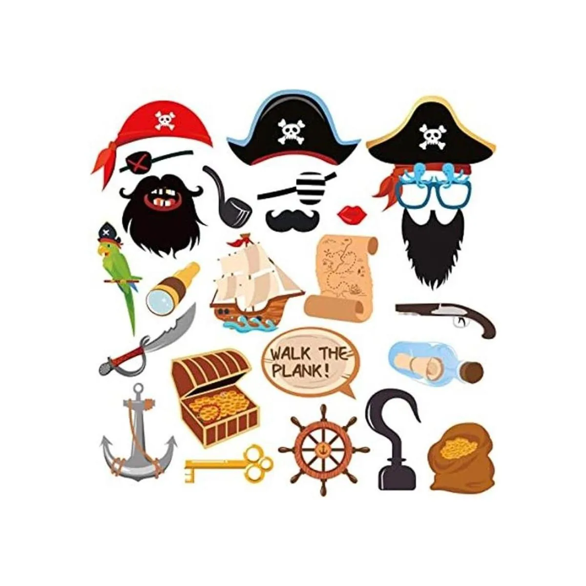 25CT Accesorios de cabina de fotos pirata con palo, accesorios de búsqueda del tesoro, suministros de fiesta de primer cumpleaños temáticos de piratas del Caribe