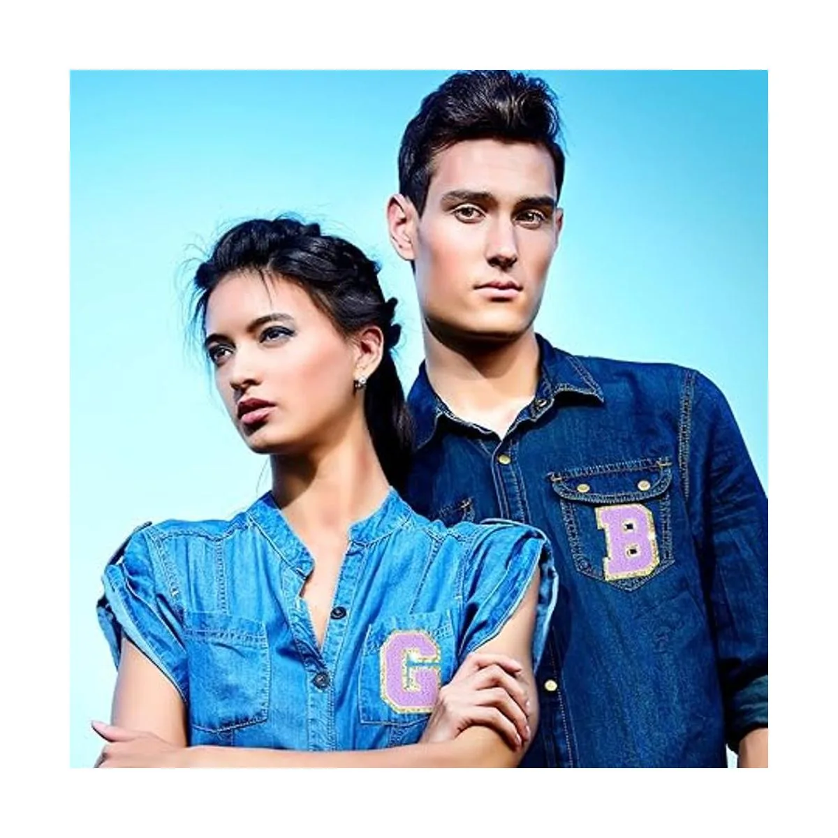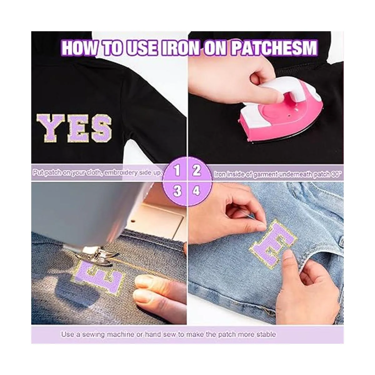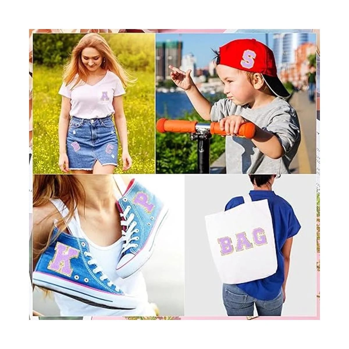 26 parches de brillantina para planchar con letras de chenilla AZ, parches bordados para reparación de ropa, sombreros, camisas, zapatos, bolsas de jeans dorado, morado
