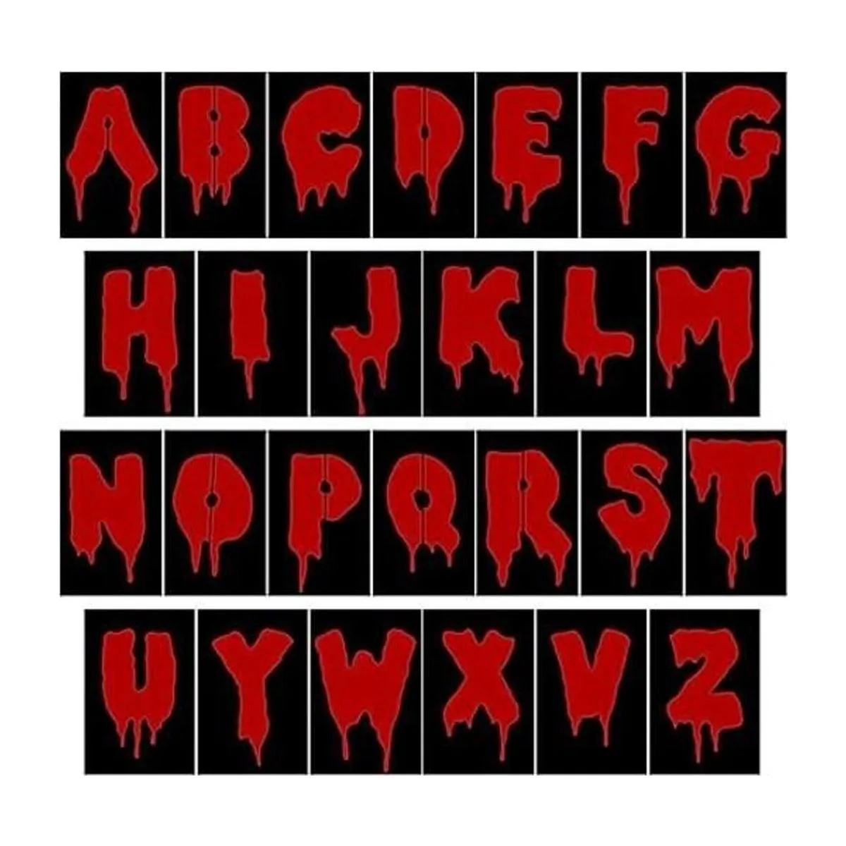 Paquete del producto: recibirás 26 plantillas de letras estilo gore de Halloween en cantidad suficiente para satisfacer tus diferentes necesidades para crear cualquier proyecto de arte de bricolaje.