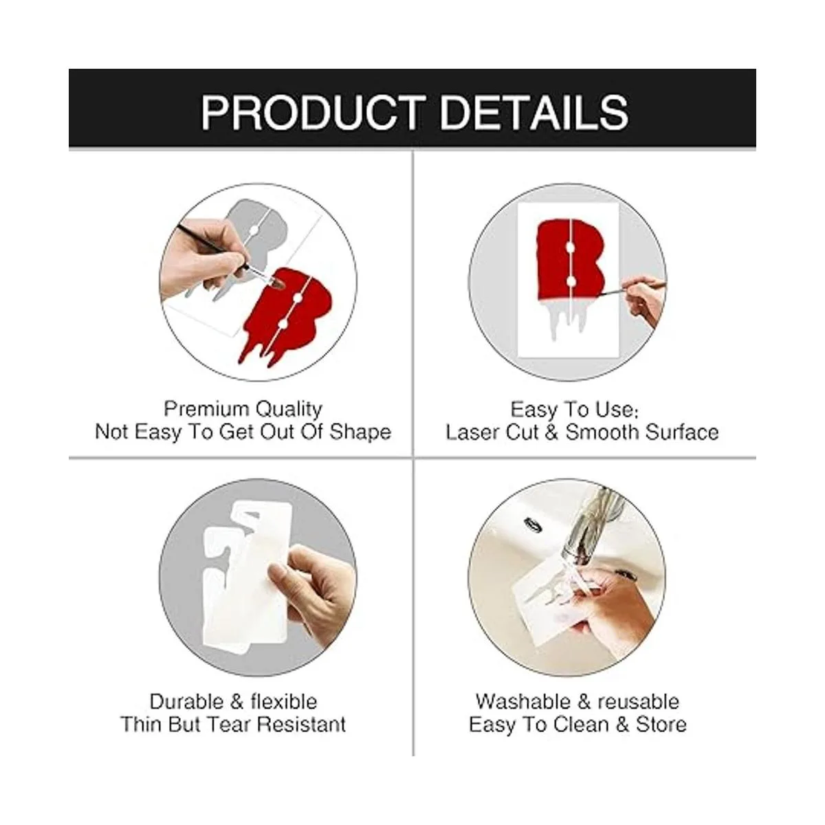 Fácil de usar: nuestras plantillas de letras de Halloween están hechas de material PET impermeable, suave, lavable, reutilizable, resistente, no se rompe ni se estropea fácilmente, sin bordes afilados, no tóxico y seguro para ti y tus hijos. Cada plantilla mide aproximadamente 4 x 4 pulgadas, perfecta para arte de bricolaje.