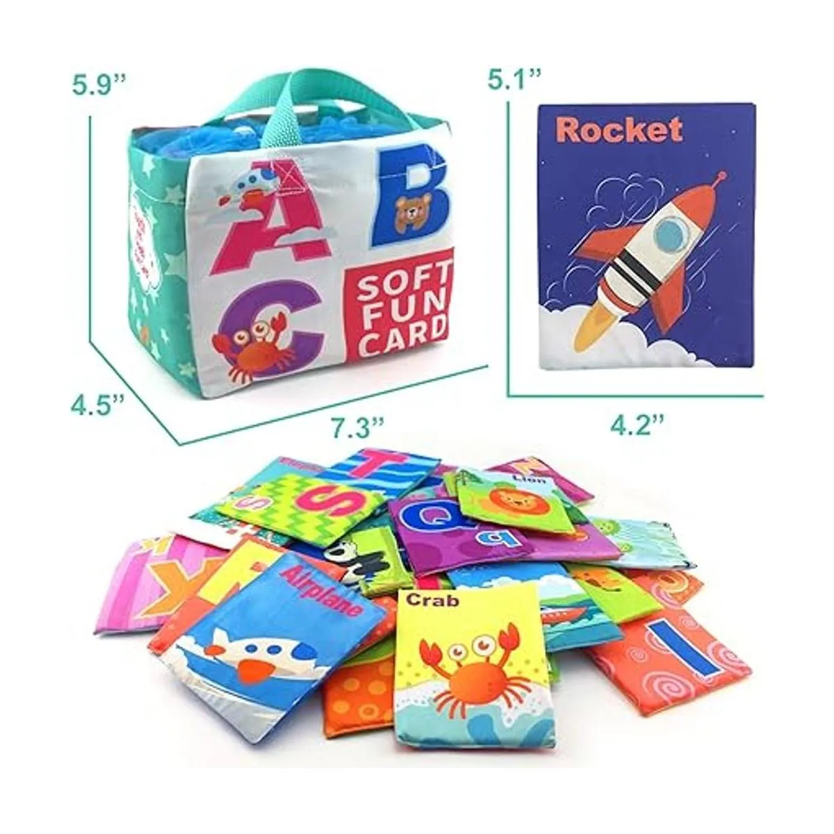 26 tarjetas suaves del alfabeto con bolsa de almacenamiento de tela para bebés, niños pequeños y niños, tarjetas flash de aprendizaje, los mejores juguetes educativos tempranos para niños y niñas de 0, 1, 2, 3 años