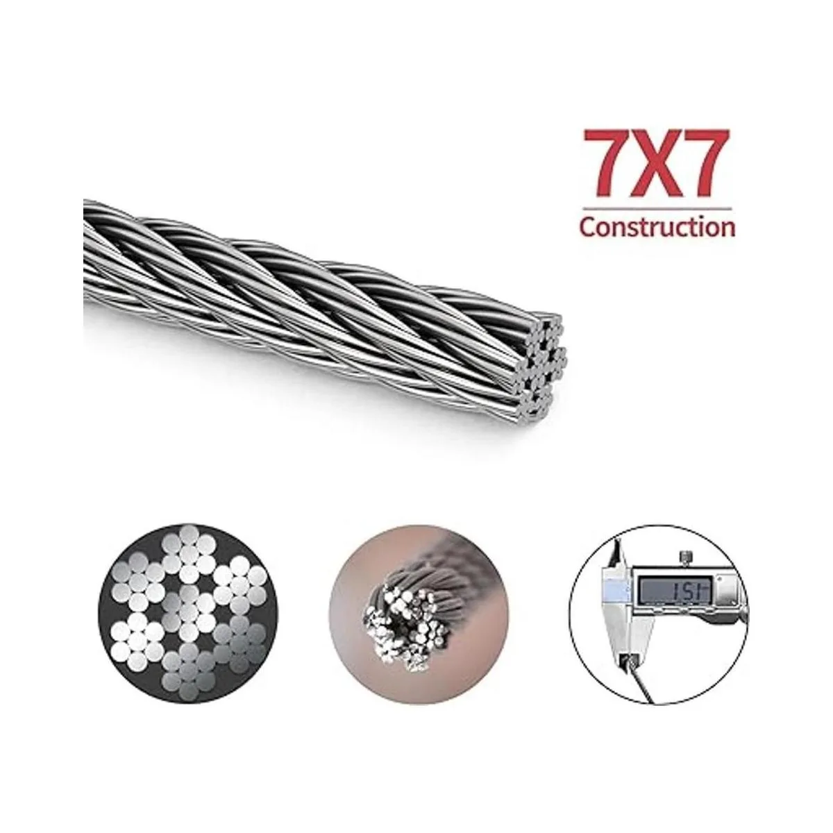 Revestimiento de vinilo: el alambre es de 0.059 in de grosor intotal, incluyendo cuerda de acero inoxidable de 0.047 in y cubierto por PVC de 0.012 in, lo que lo hace más conservador y prevención de óxido