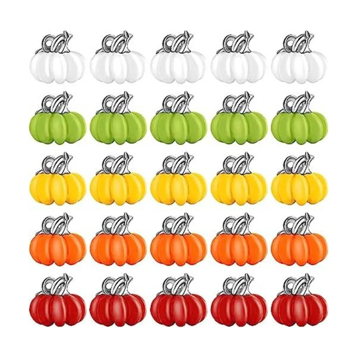 Recibirás: el paquete incluye 27 dijes de calabaza de Halloween, colores específicos dependen de tu elección, con el tamaño de 0.4 x 0.4 pulgadas, amplia cantidad y varios colores pueden satisfacer tus necesidades de fabricación de bricolaje