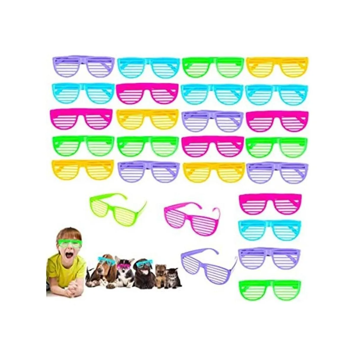 28 gafas de sombra de obturador, persianas de plástico para niños, gafas de sol para recuerdos de fiesta, disfraz novedoso