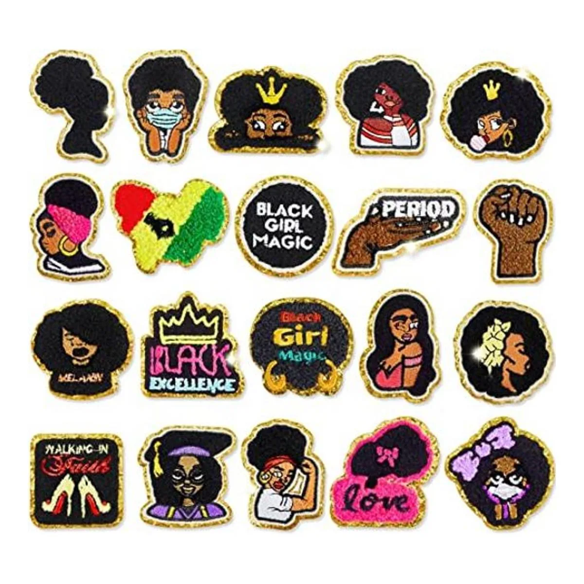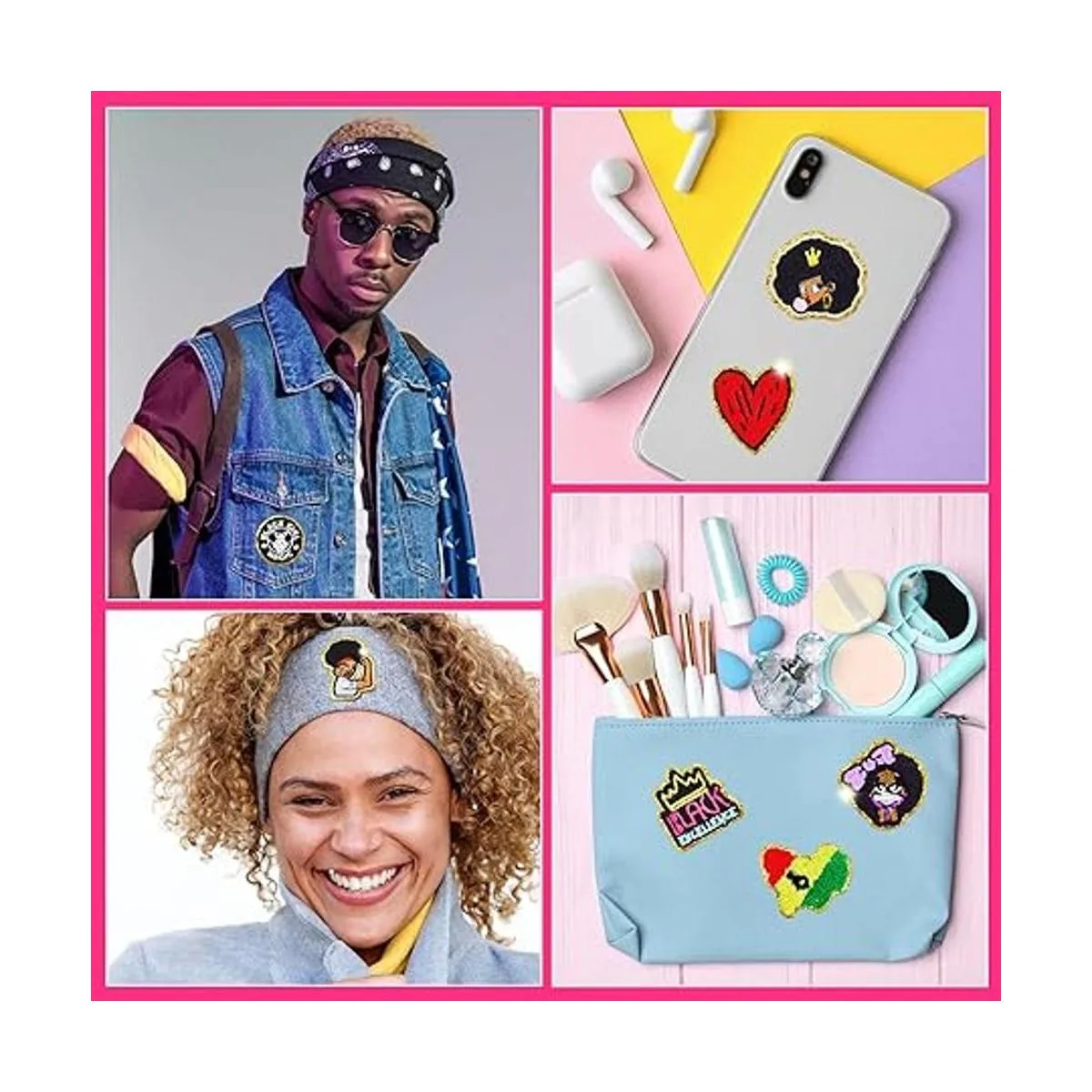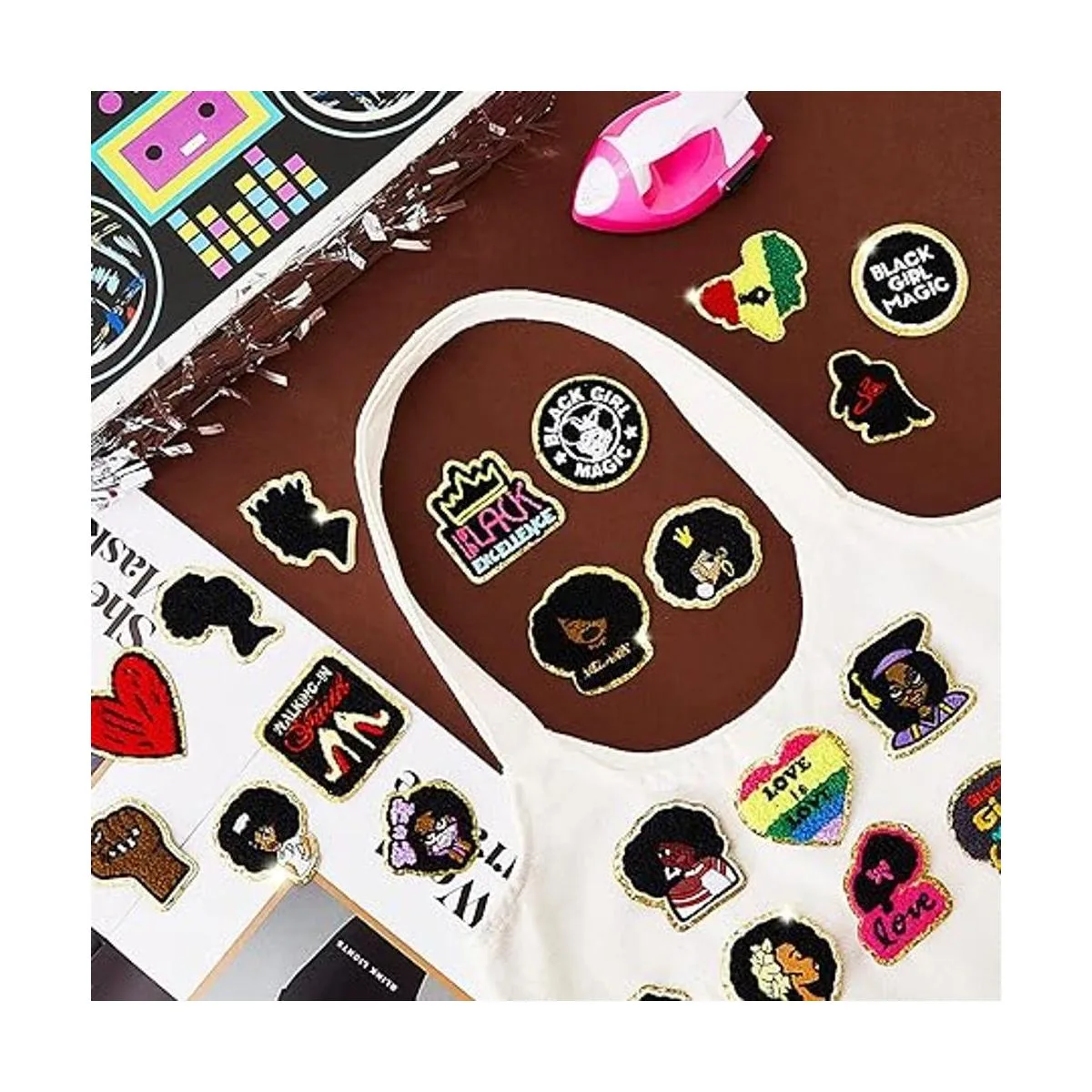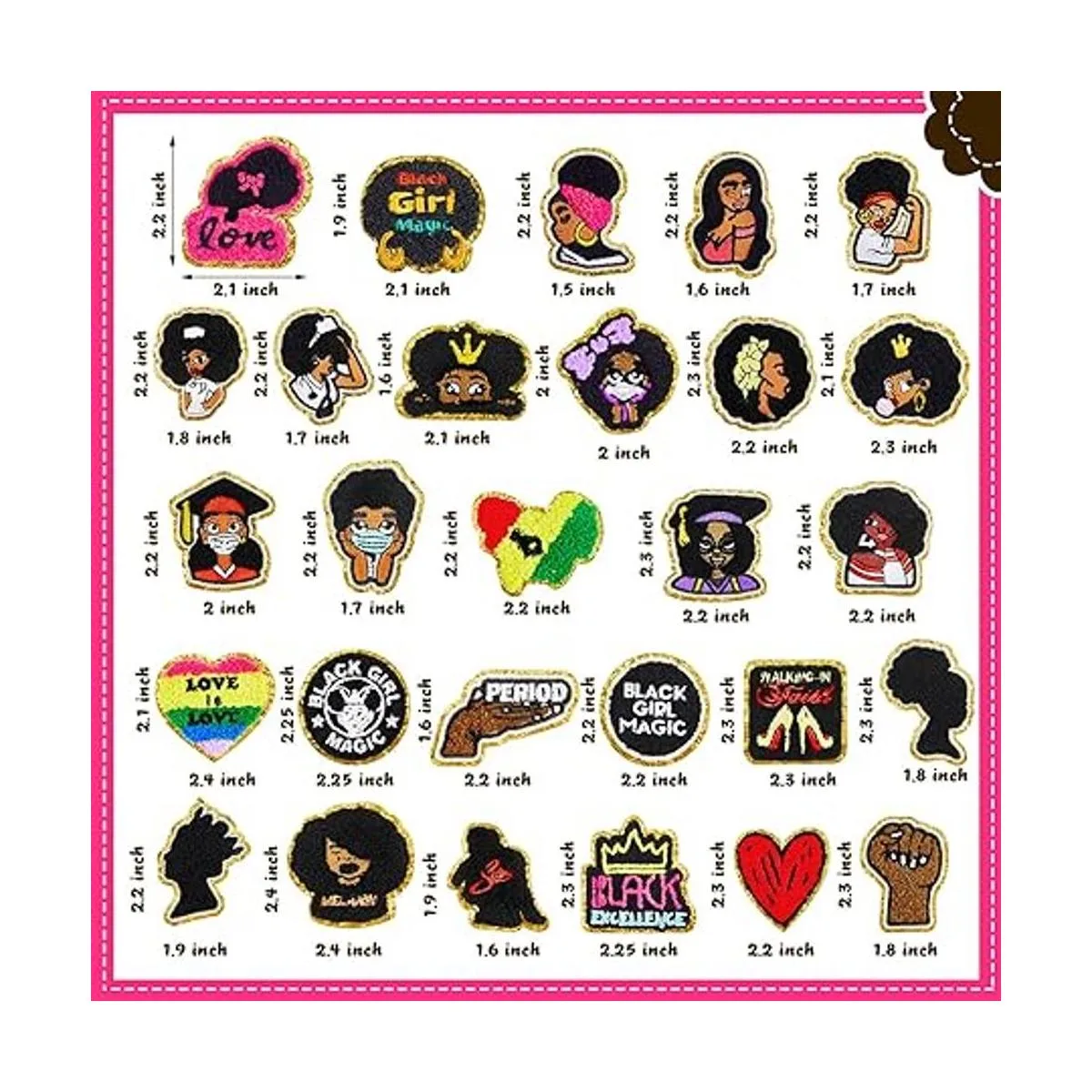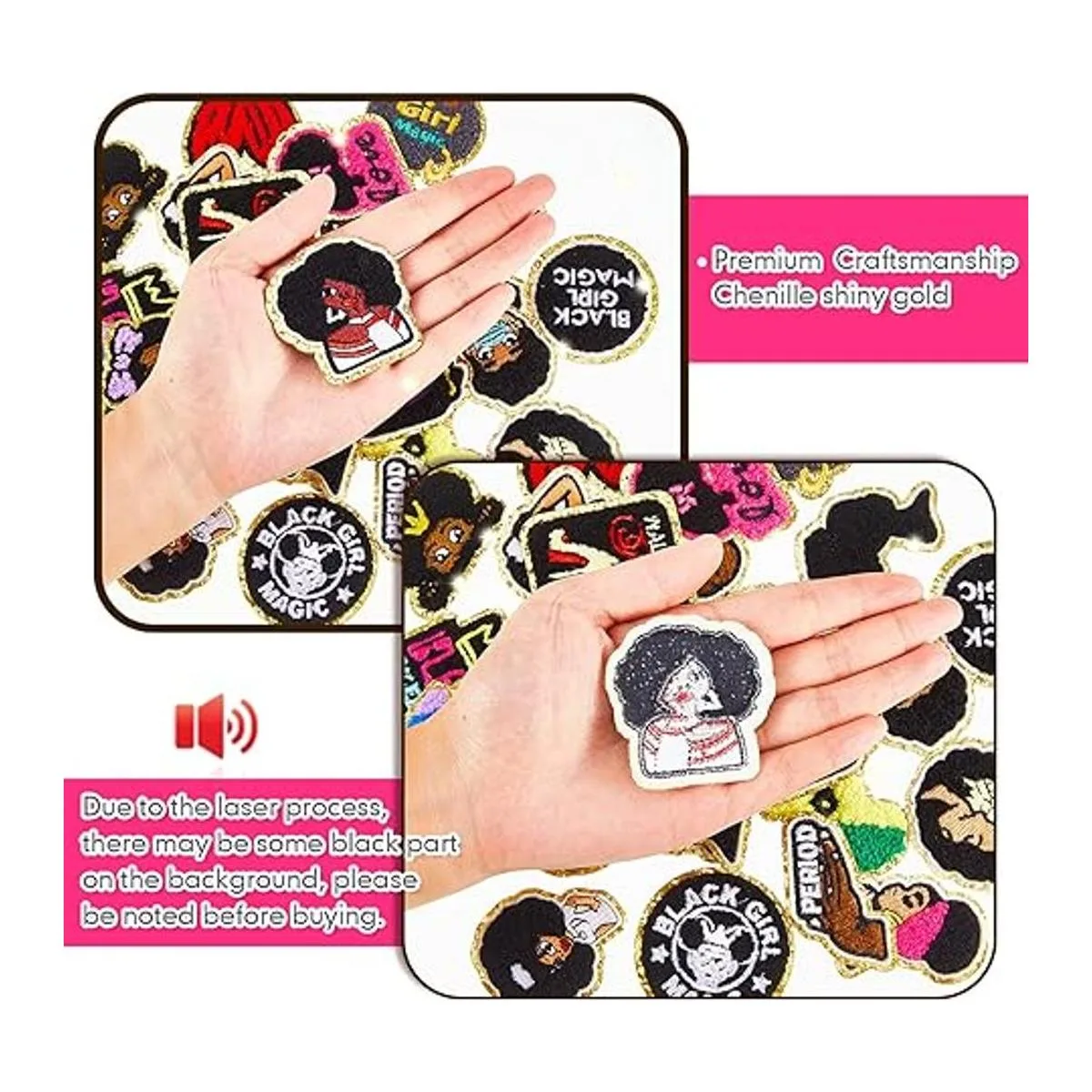 Suficiente para usar y compartir: recibirás 28 parches de chenilla para chaquetas, disponibles en el tema de niña negra, suficiente para satisfacer tus necesidades de uso diario, reemplazo y compartir, considerado y considerado