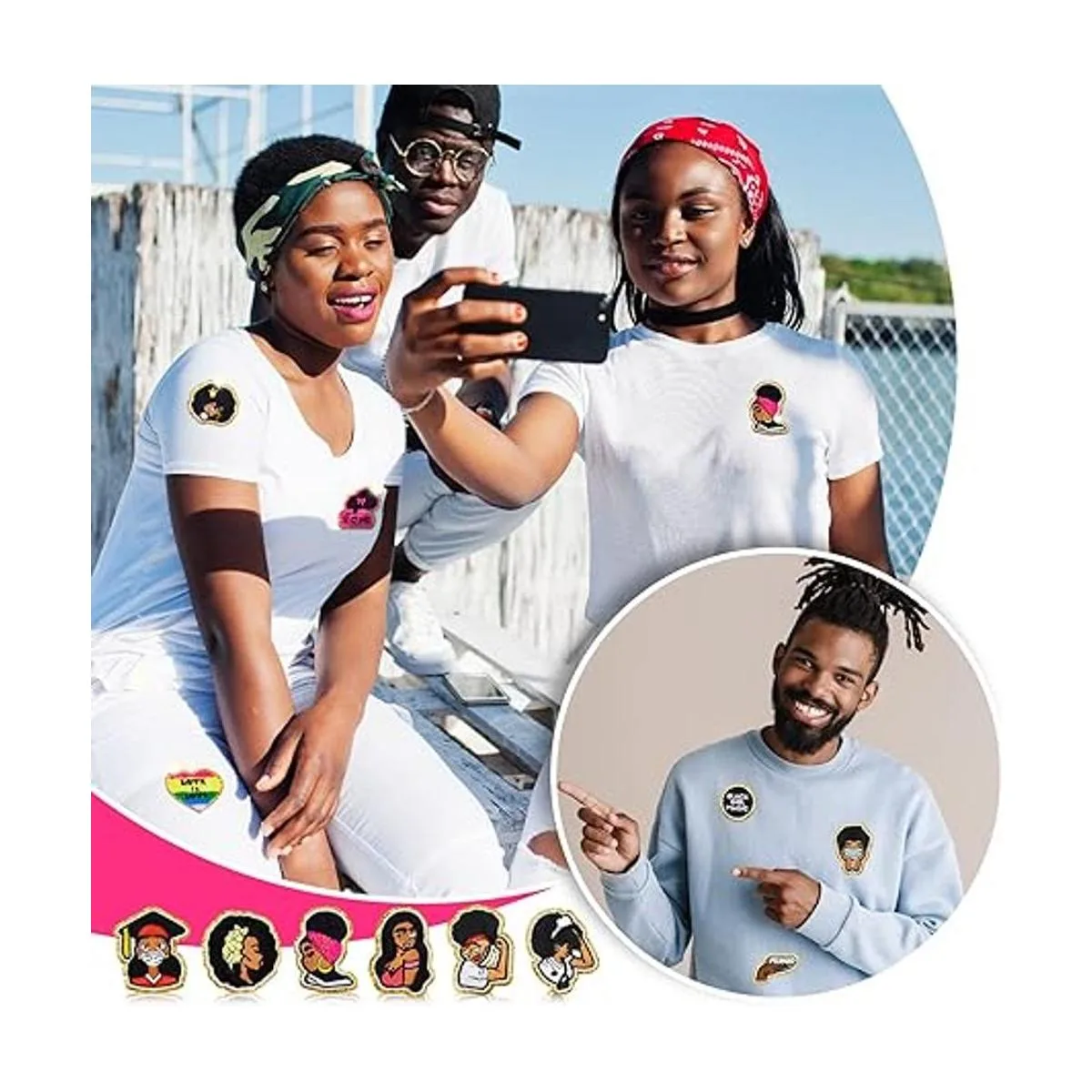 Diseño temático distintivo: nuestros parches bordados para ropa adoptan estilos clásicos de niña negra, incluyendo niña negra, niño negro, corazón, puño, mapa de frica, enfermera y más, con borde dorado, proporcionando más posibilidades para tu bricolaje