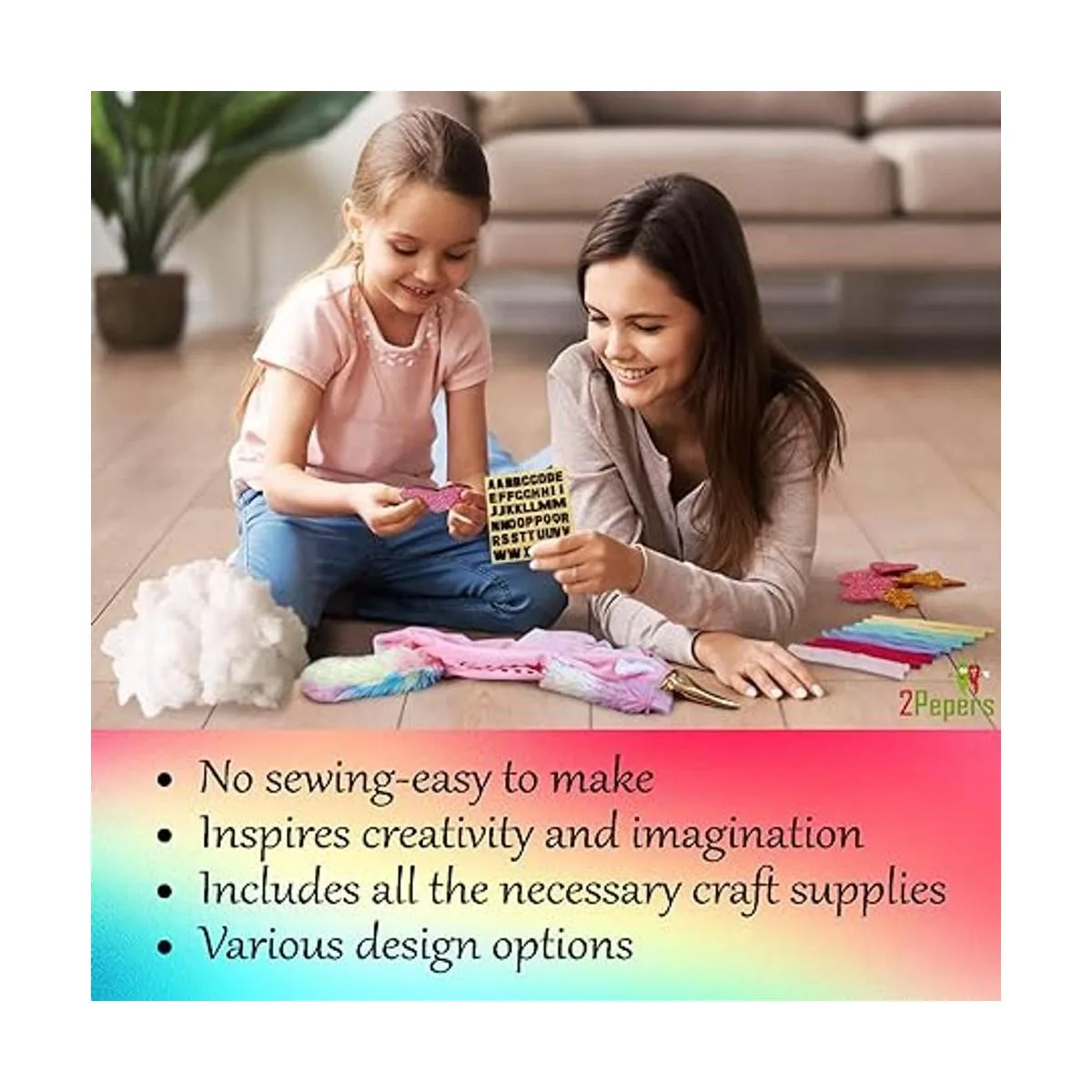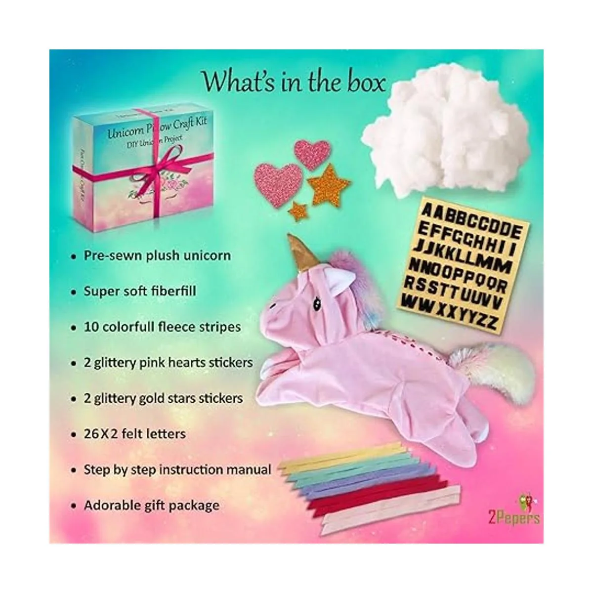 2Pepers Haz tu propio kit de almohada de unicornio para artes y manualidades para niñas no necesita costura, kit de almohada de felpa de bricolaje para niños, regalos de unicornio para niñas, proyecto de decoración de dormitorio de muñecas de unicornio