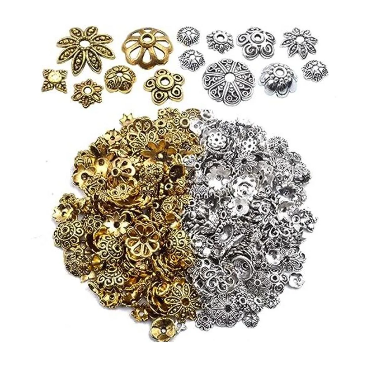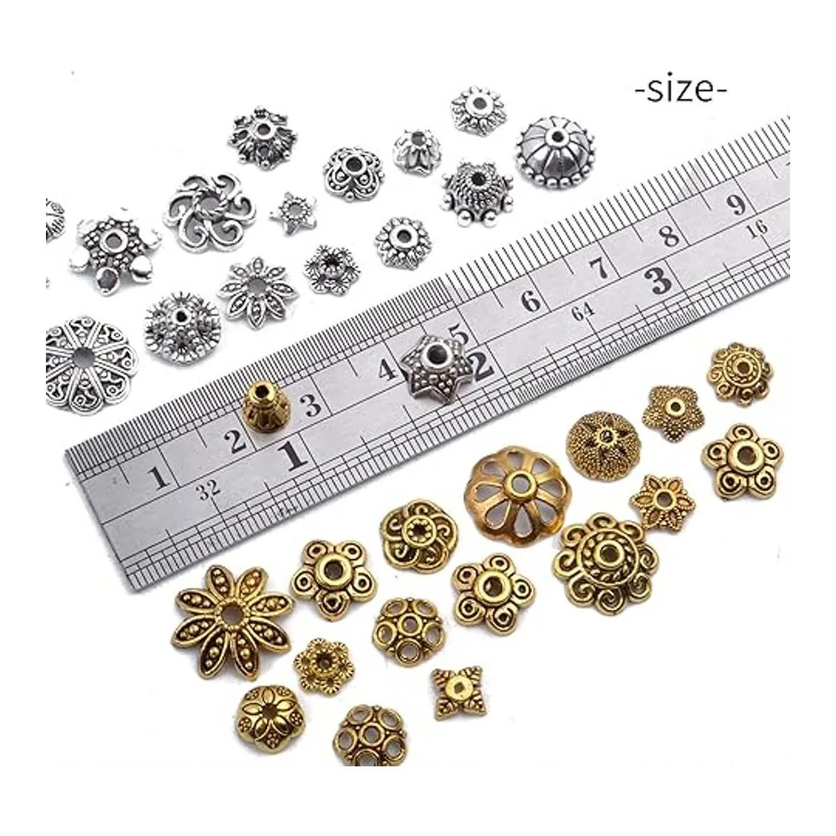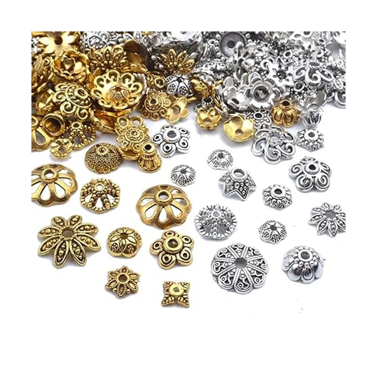 Cantidad: el paquete incluye tapas de cuentas mixtas de 3.53 oz, oro antiguo, plata antigua. Se envía al azar.
