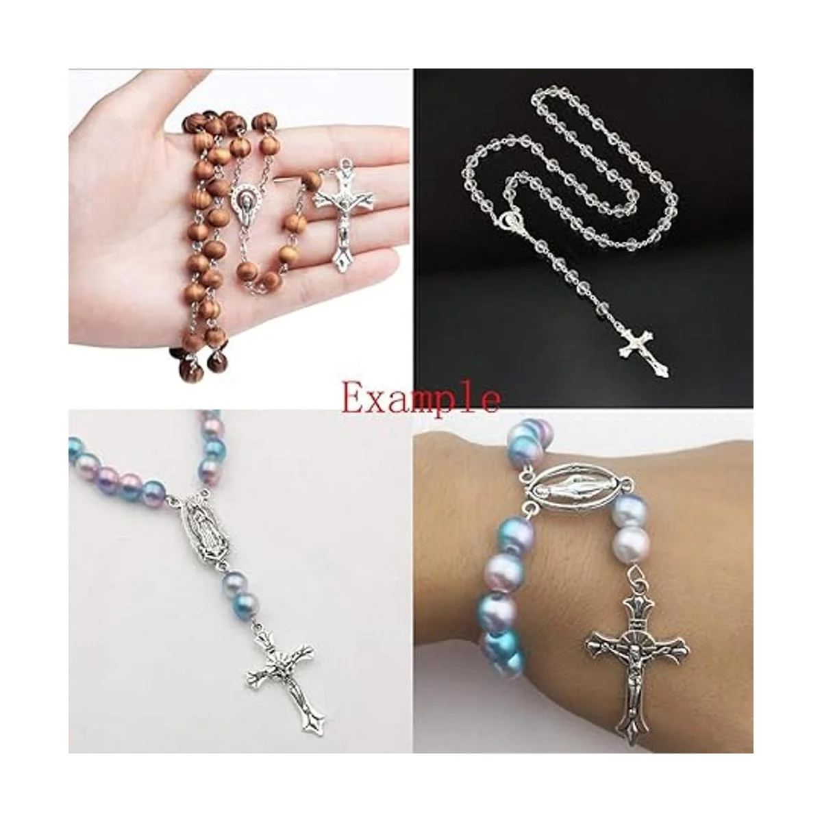 Rosario de regalo católico bendecido cruz y centro medalla milagrosa con colgantes de cruz de crucifijo de aleación y eslabones ovalados de araña para rosario de cuentas sagradas para hacer collares, accesorios de fabricación de joyas, dijes de metal al por mayor, gran variedad de temas y estilos para todo tipo de intereses, ideal para fiestas o grupos.