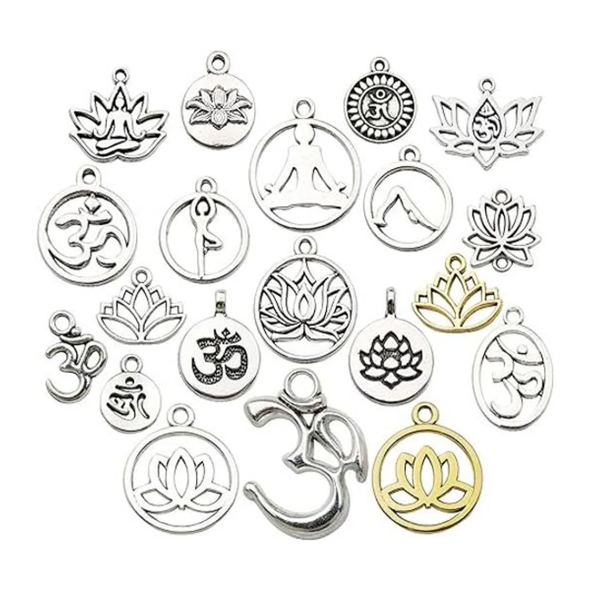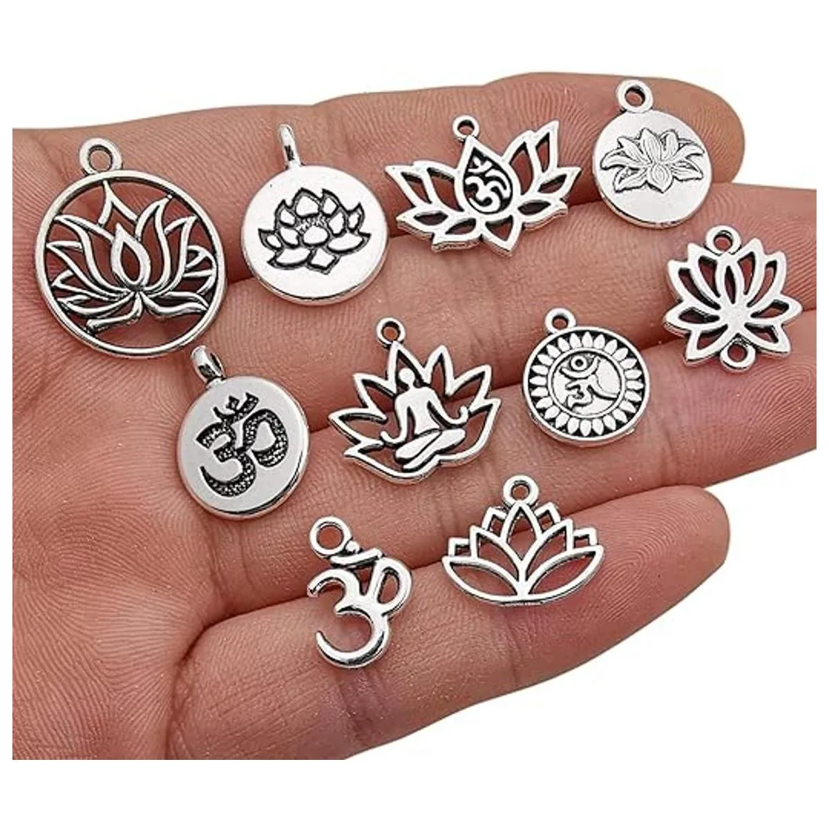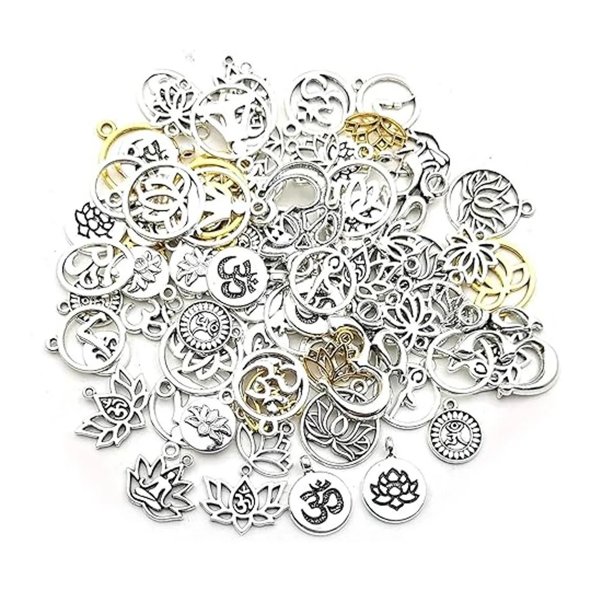 3.53 oz 80 unidades Suministros de manualidades, plata envejecida, para yoga, yoga, loto, OM, para hacer joyas, manualidades, hallazgos, accesorio para bricolaje collar pulsera M294