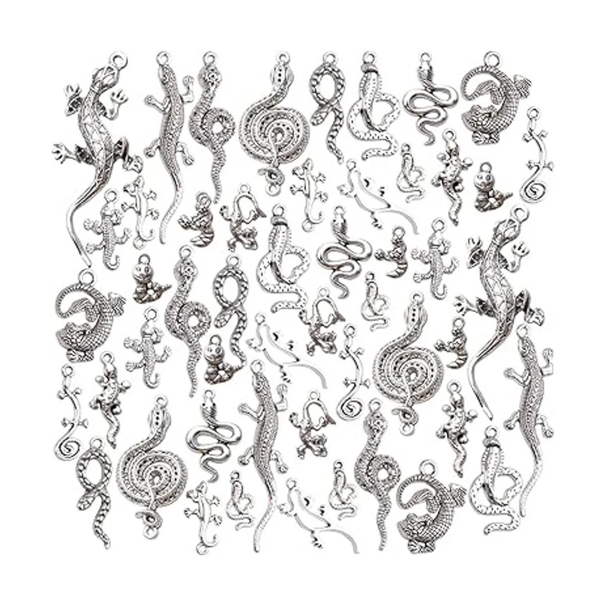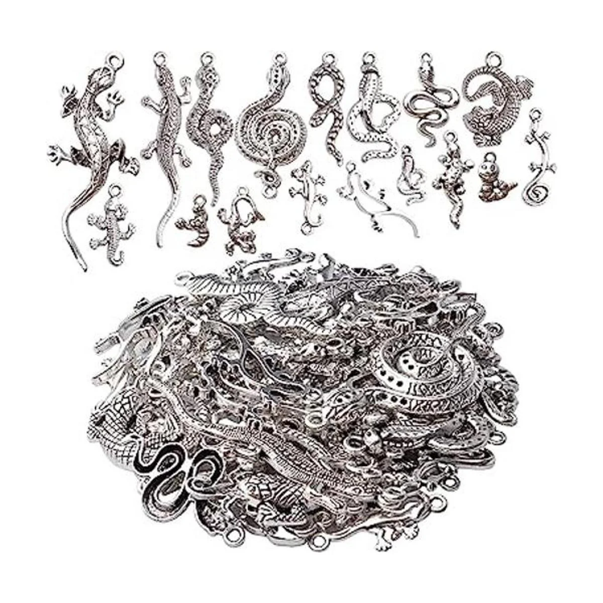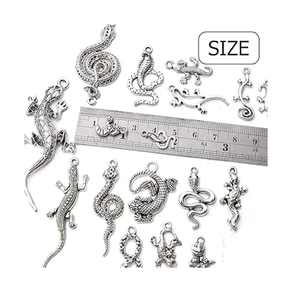 3.53 oz Suministros de Artesanía de Plata Antigua Serpiente Encantos de Lagarto Encantos de Aleación de Estilo Mixto de Animales Encantos Colgante de Lagarto Encantos de Joyería