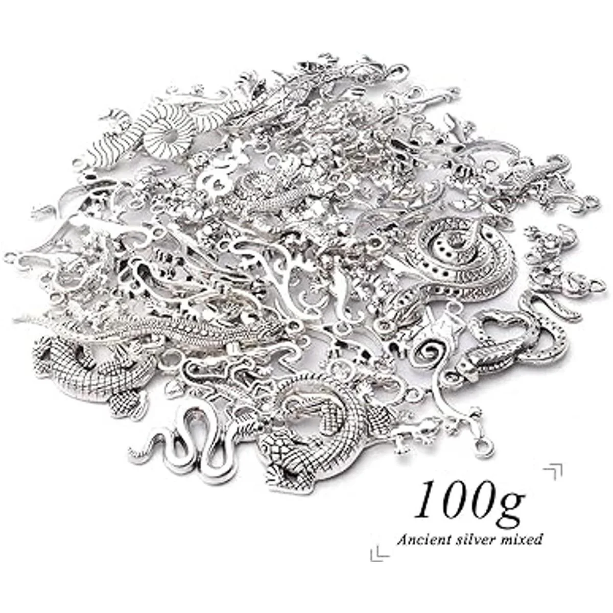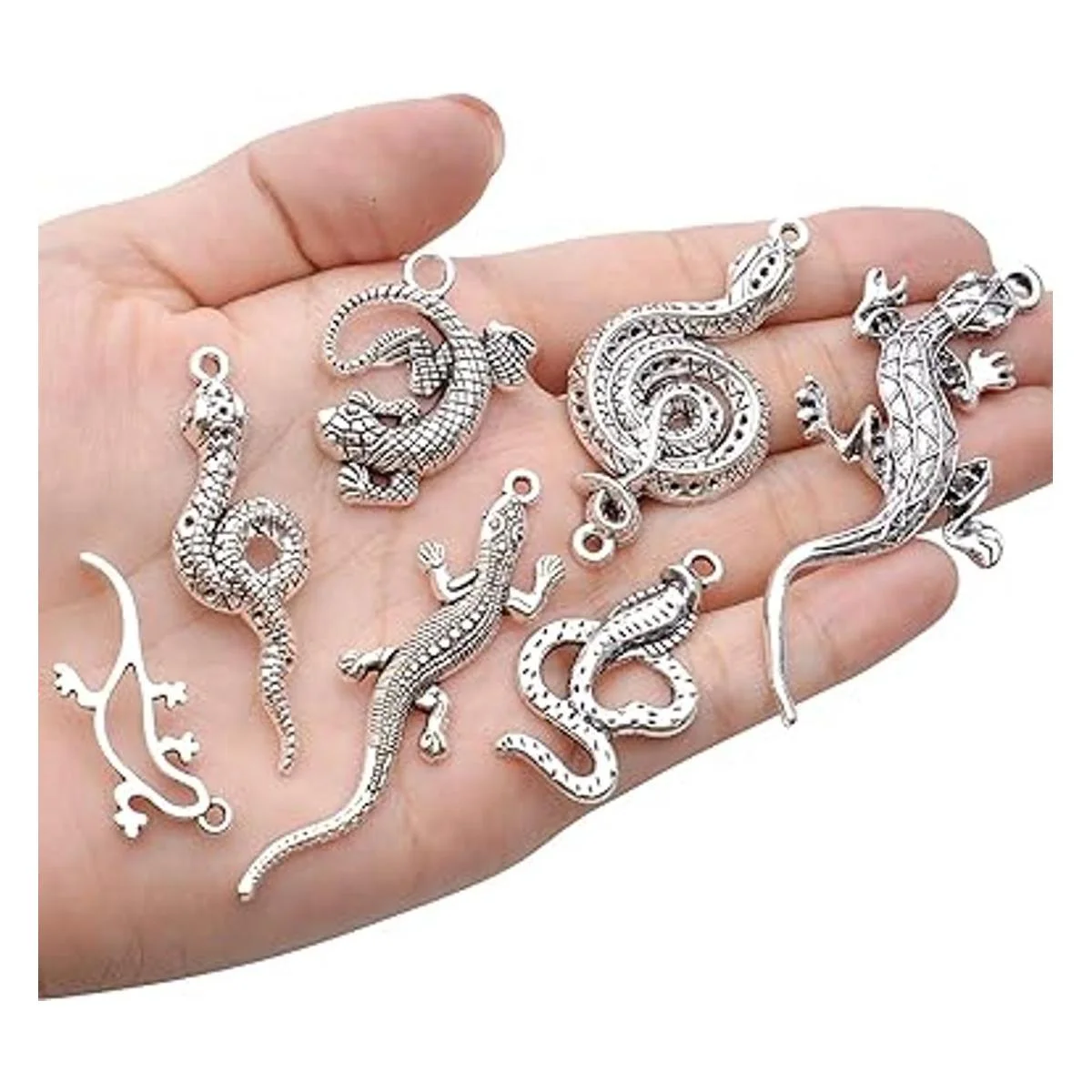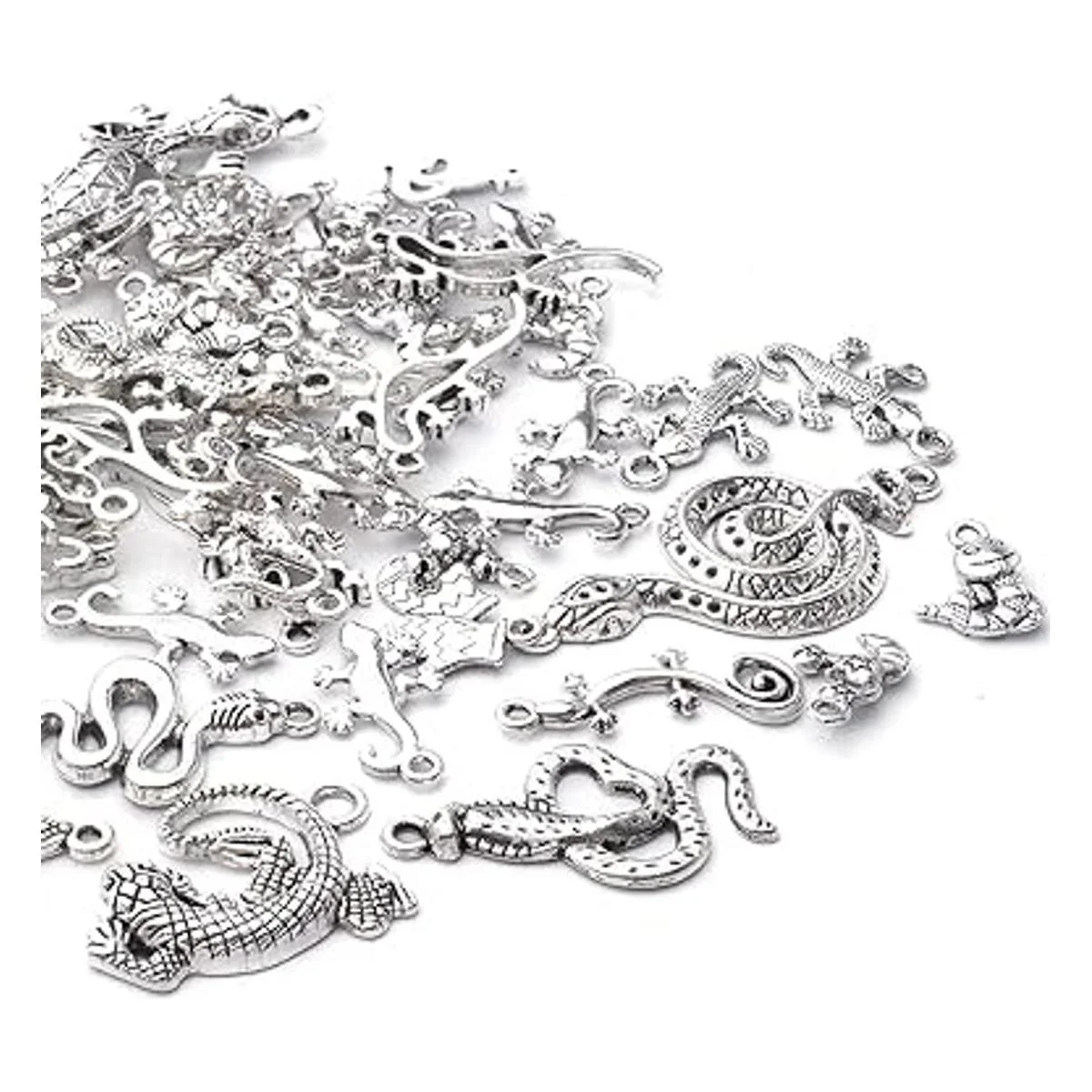 3.53 oz Suministros de Artesanía de Plata Antigua Serpiente Encantos de Lagarto Encantos de Aleación de Estilo Mixto de Animales Encantos Colgante de Lagarto Encantos de Joyería