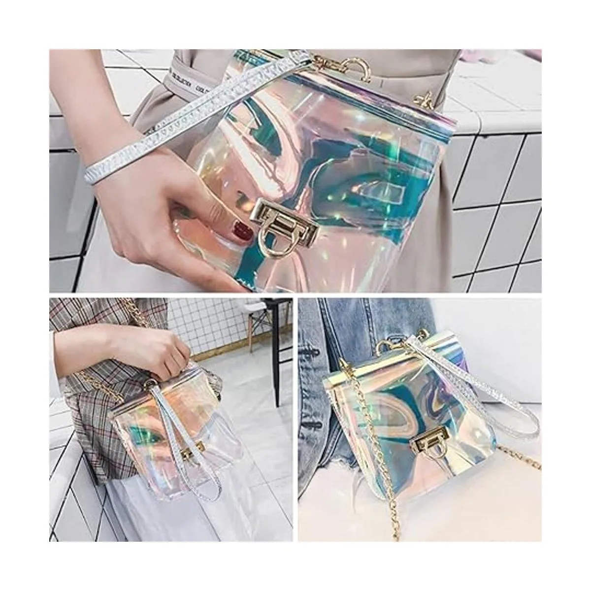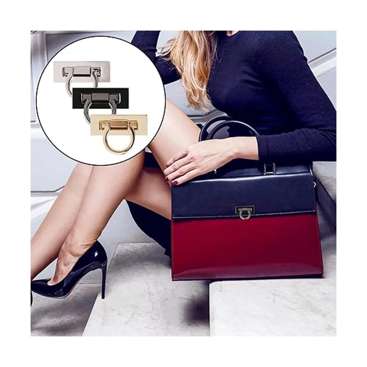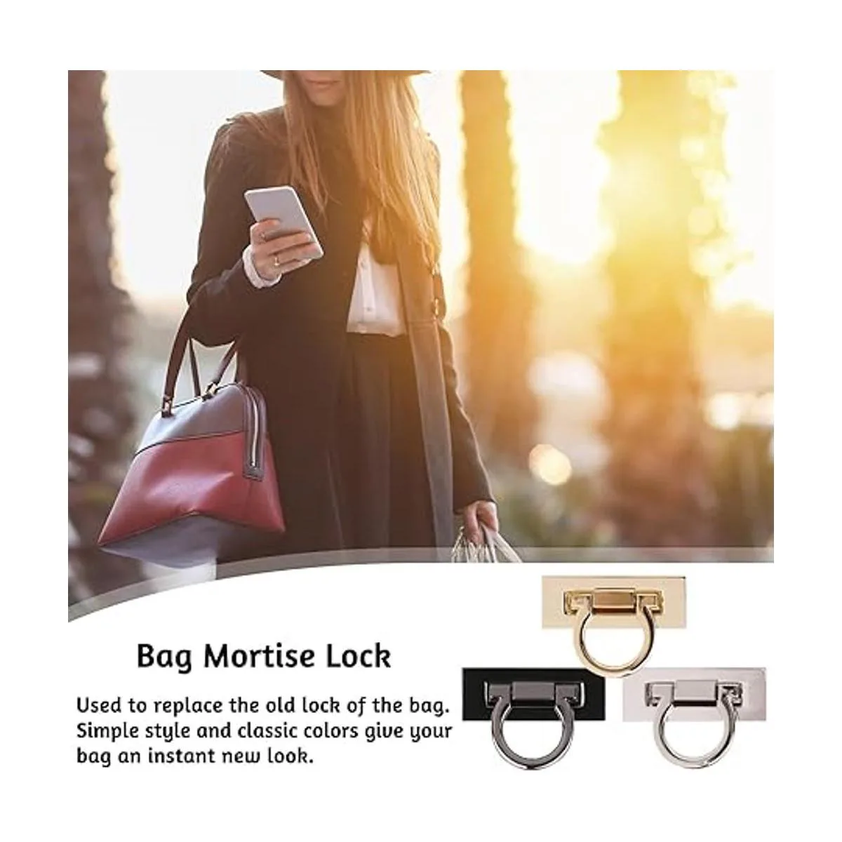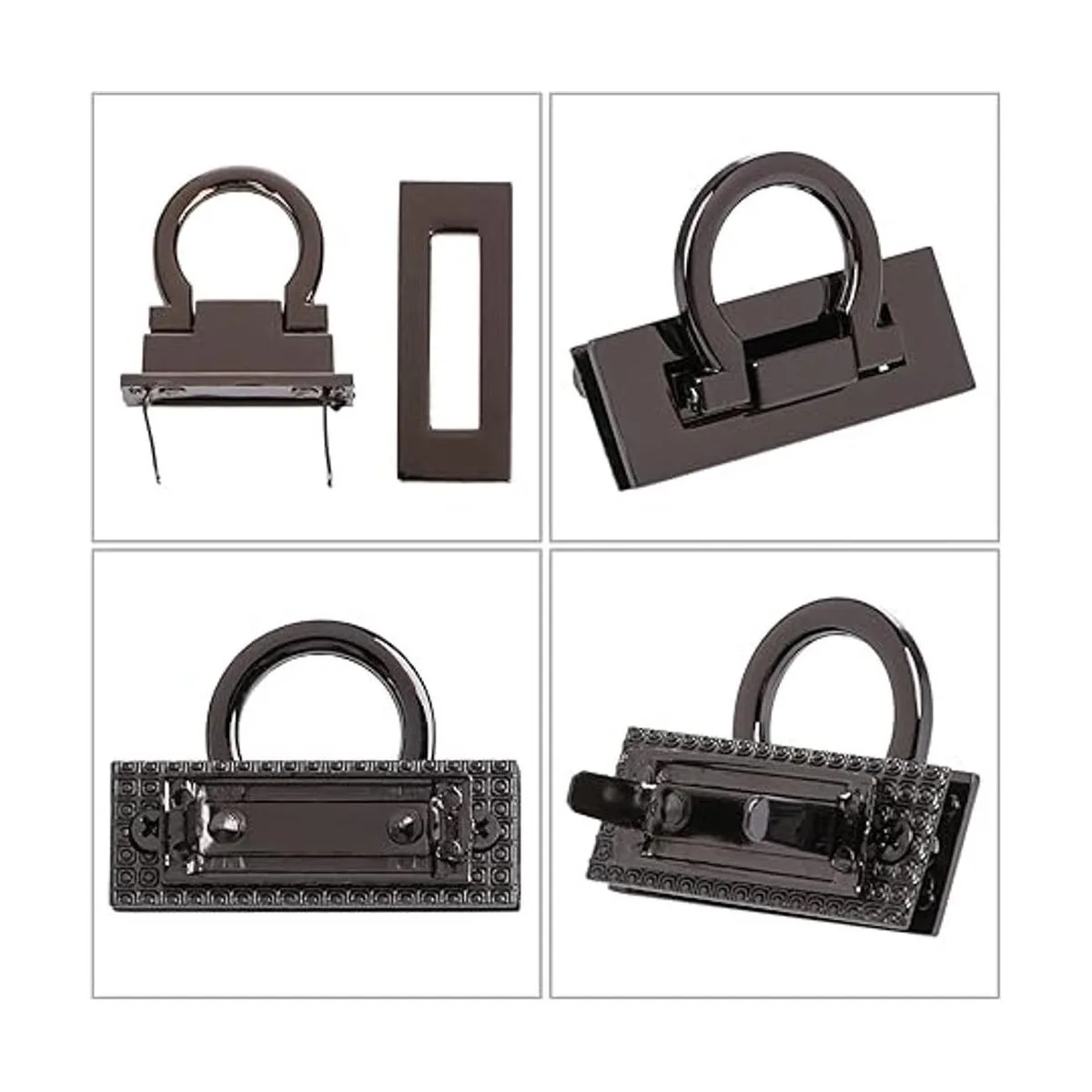 Tipo rectangular El bloqueo de forma rectangular tiene estética geométrica, clásica y elegante, y el plateado, negro y dorado pueden añadir un color brillante a tu bolso, adecuado para todo tipo de bolsos de mujer