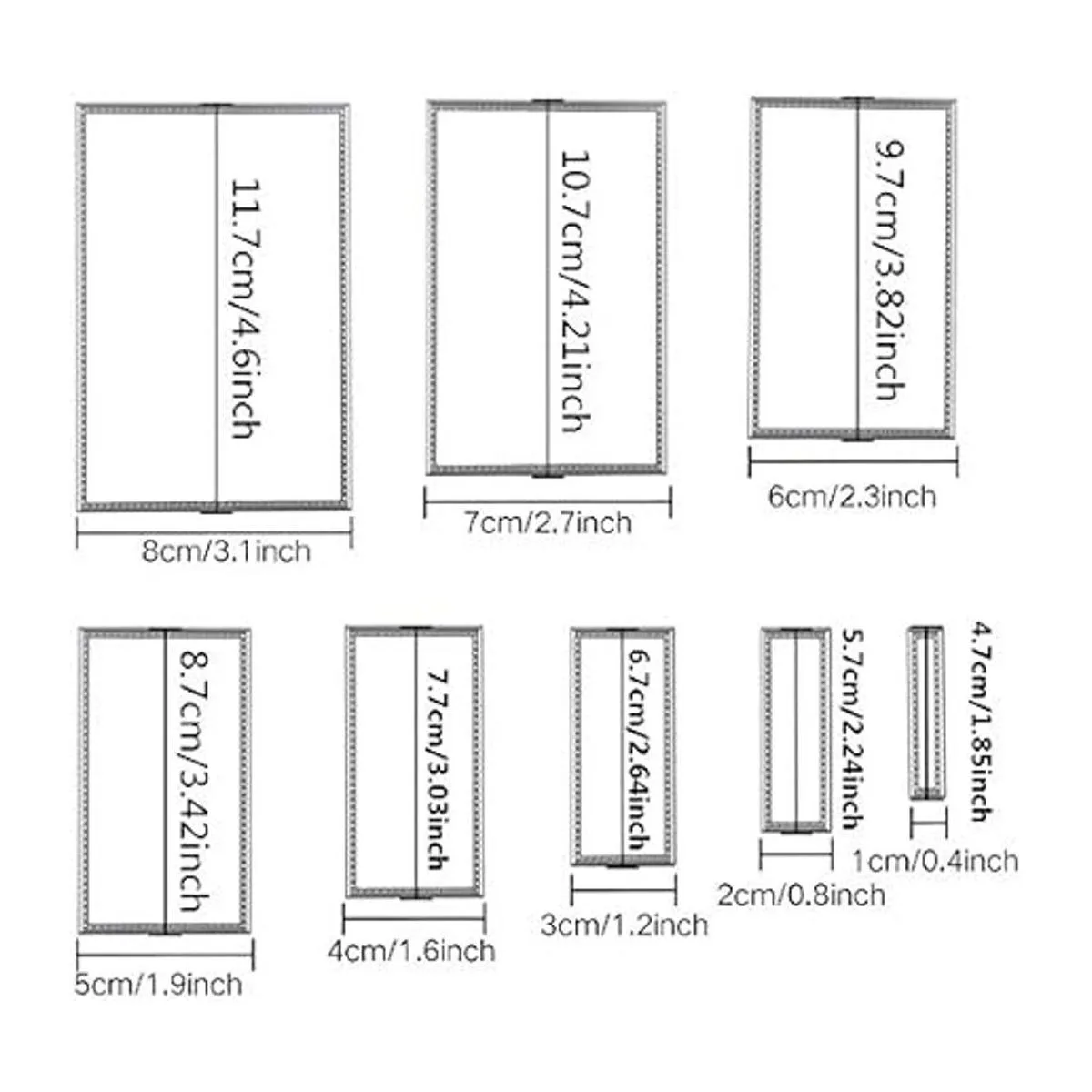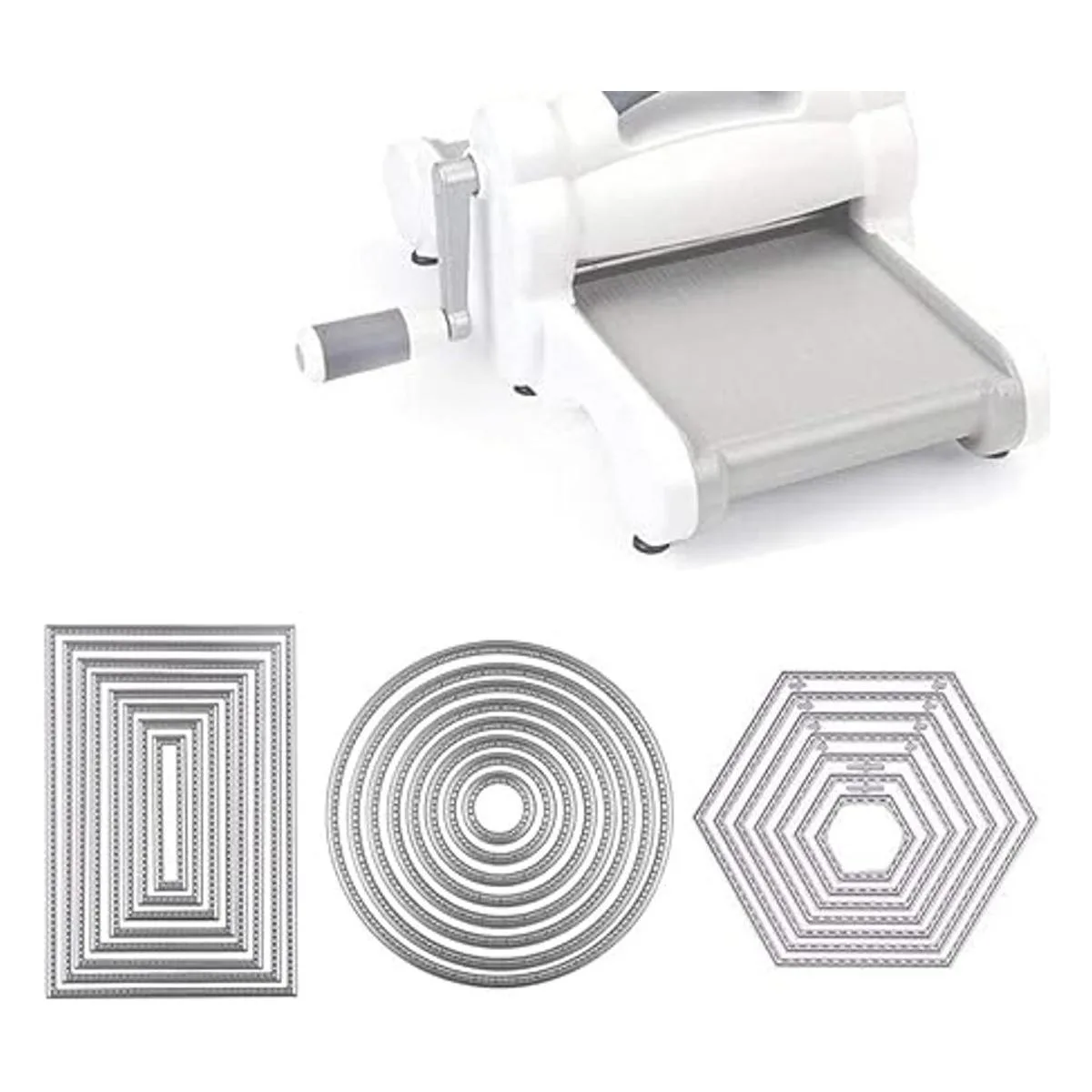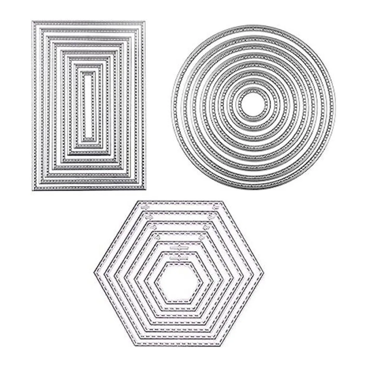 El paquete incluye: 3 juegos de troqueles de diferentes formas, 1 rectangular, 1 redondo, 1 hexagonal, hay 8 formas diferentes en un conjunto de troqueles de corte