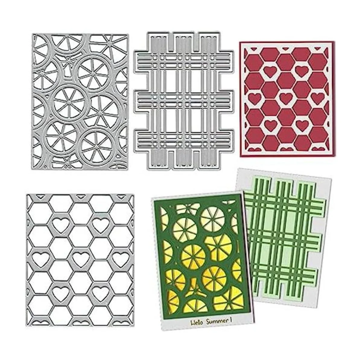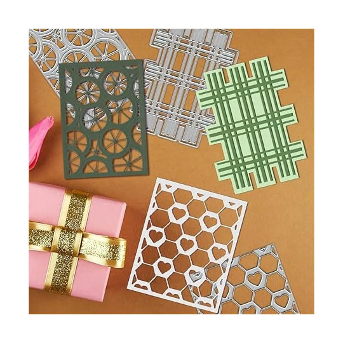 3 hojas de troqueles rectangulares para hacer tarjetas, troqueles de corte de fondo geométrico huecos, cuadrículas cuadradas, plantillas de relieve para álbumes de recortes, tarjetas, álbumes de manualidades, suministros de manualidades