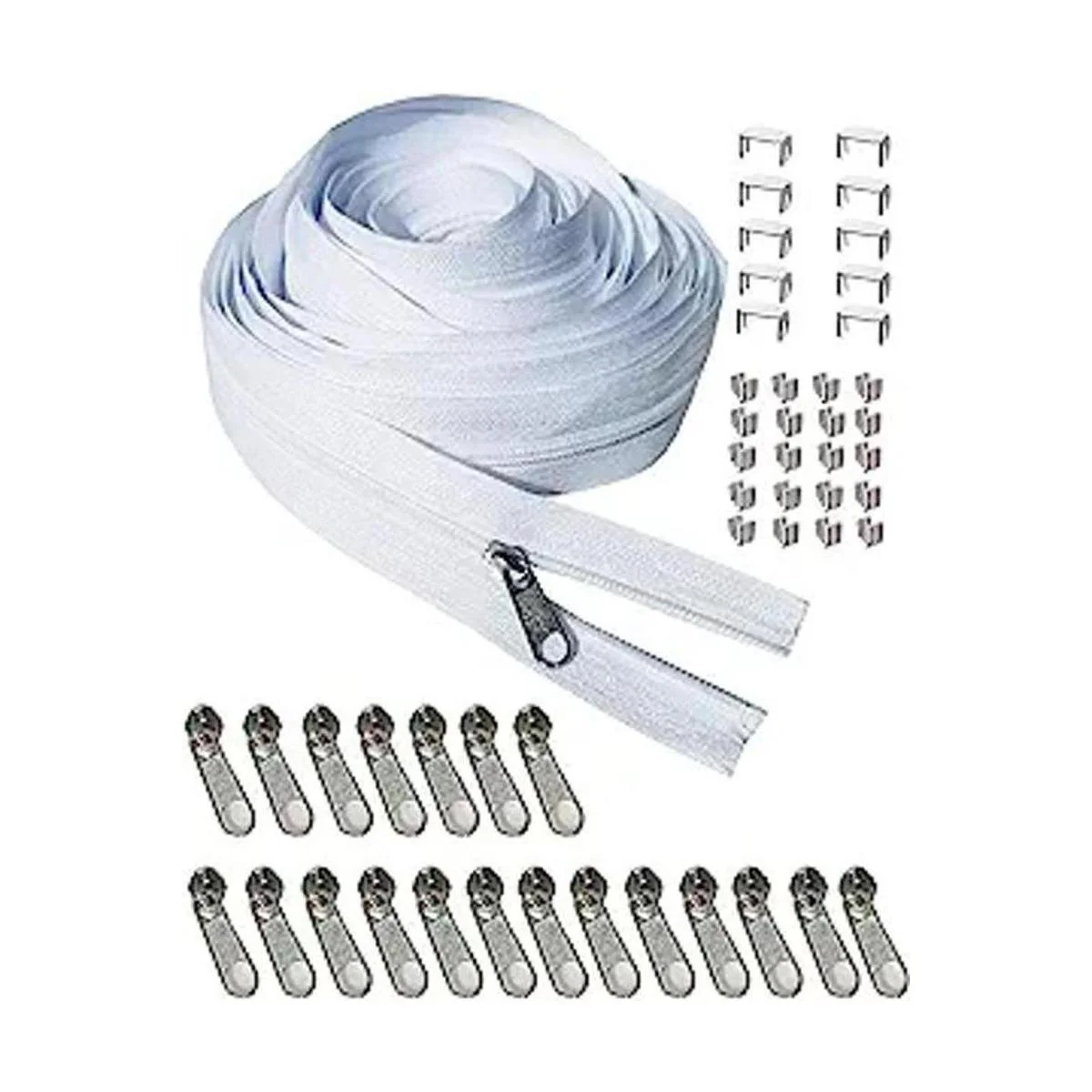 Kit de reparación de cremallera tamaño 3 blanco cremalleras largas bobina de nailon 10 yardas para coser.