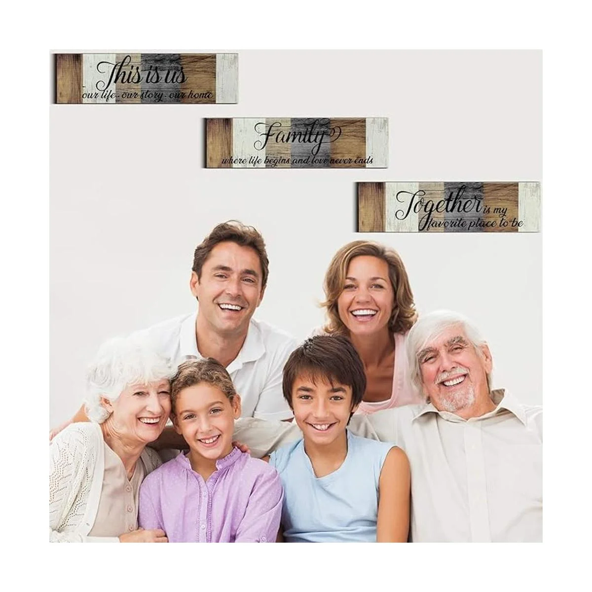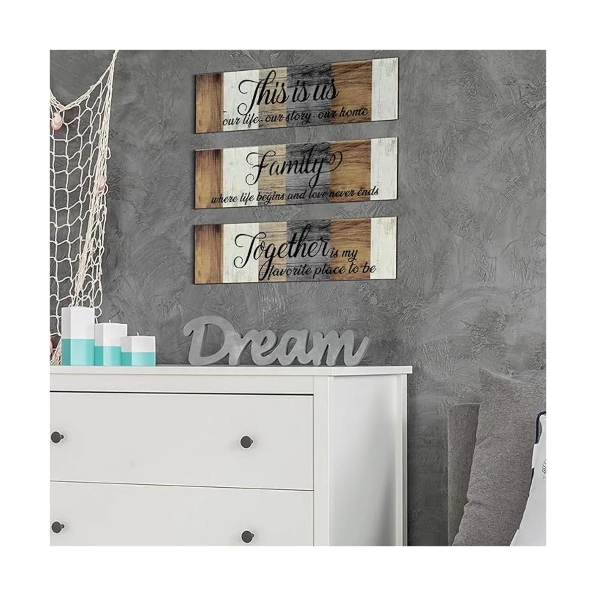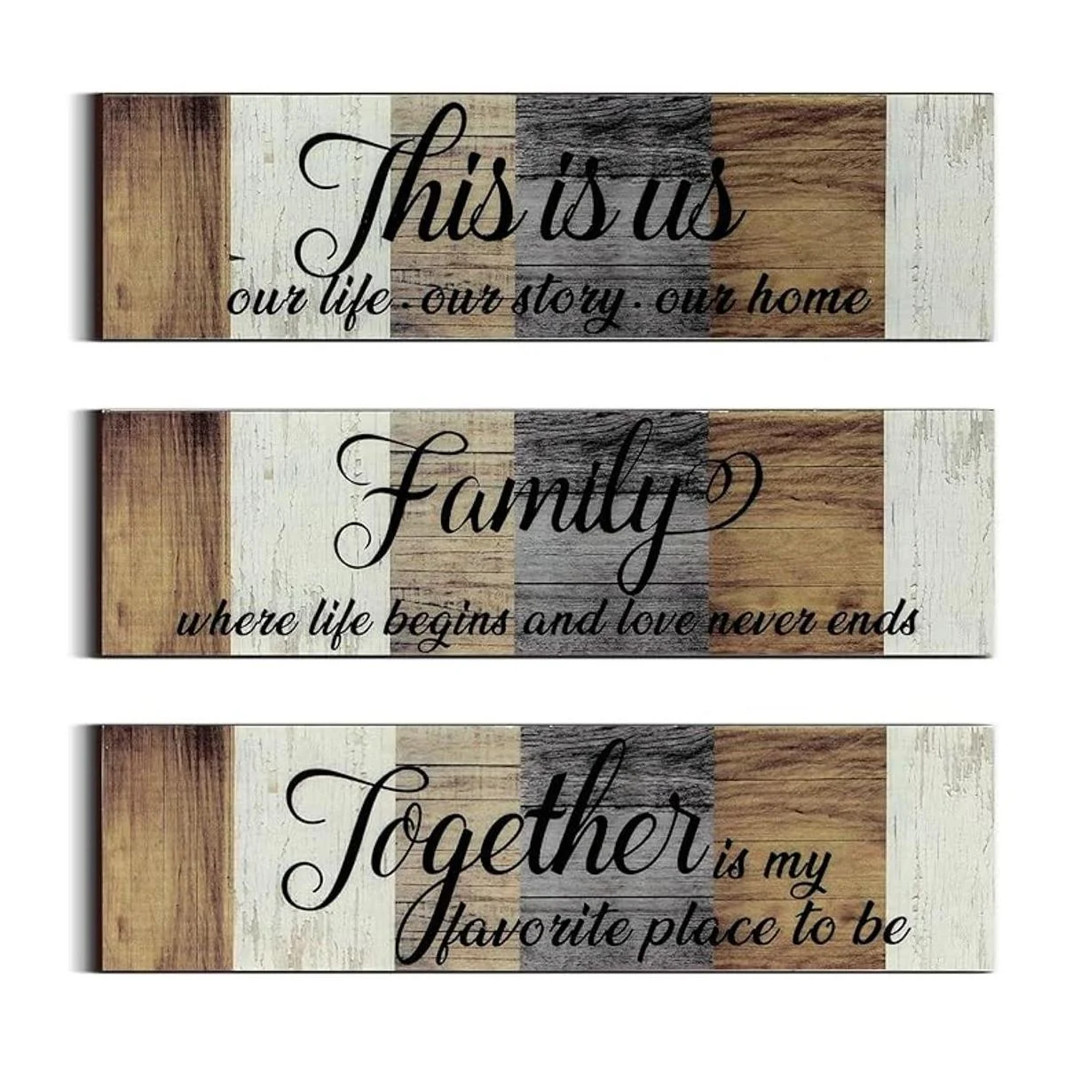 3 letreros de This is Us rústicos para decoración del hogar, letrero de madera para colgar juntos, decoración de pared para sala de estar, cocina, dormitorio, lavandería, baño, oficina, casa de calentamiento marrón, beige, gris