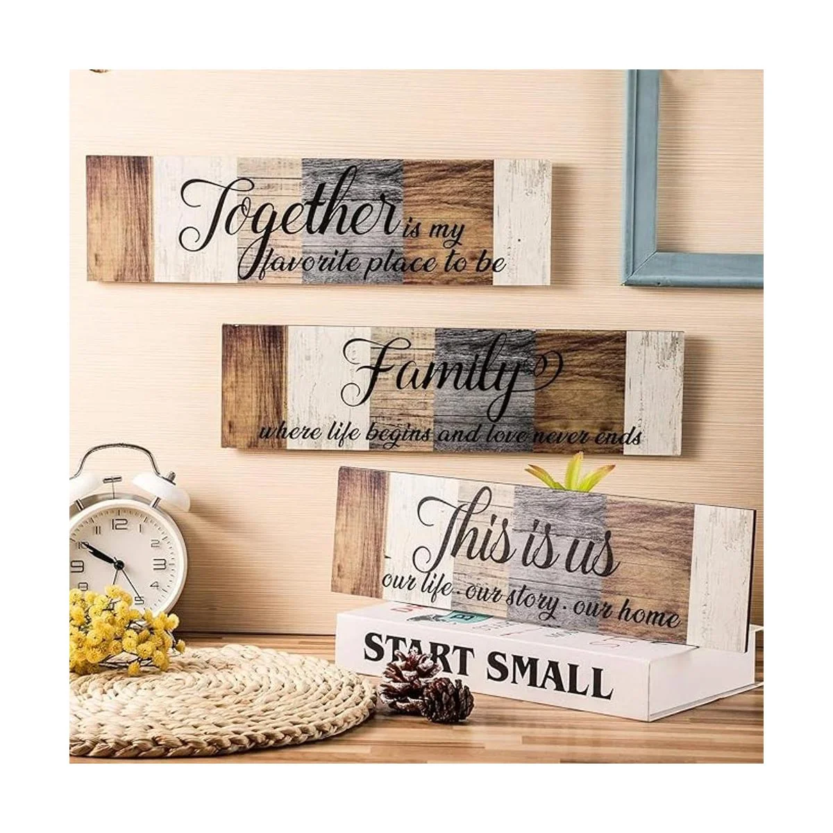 Arte de pared cálido: los letreros rústicos de madera para decoración de pared del hogar tienen 3 lemas diferentes para el hogar, que son la cálida expresión emocional para complementar la pared de fotos de tu hogar, y se pueden integrar muy bien con otros tipos de decoración del hogar, haciendo hermosos colores para mezclar con buenos deseos.