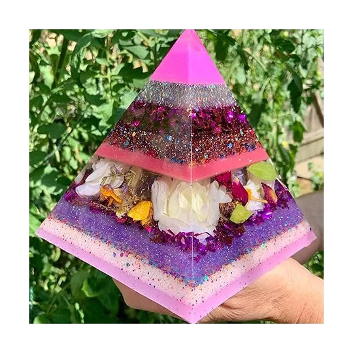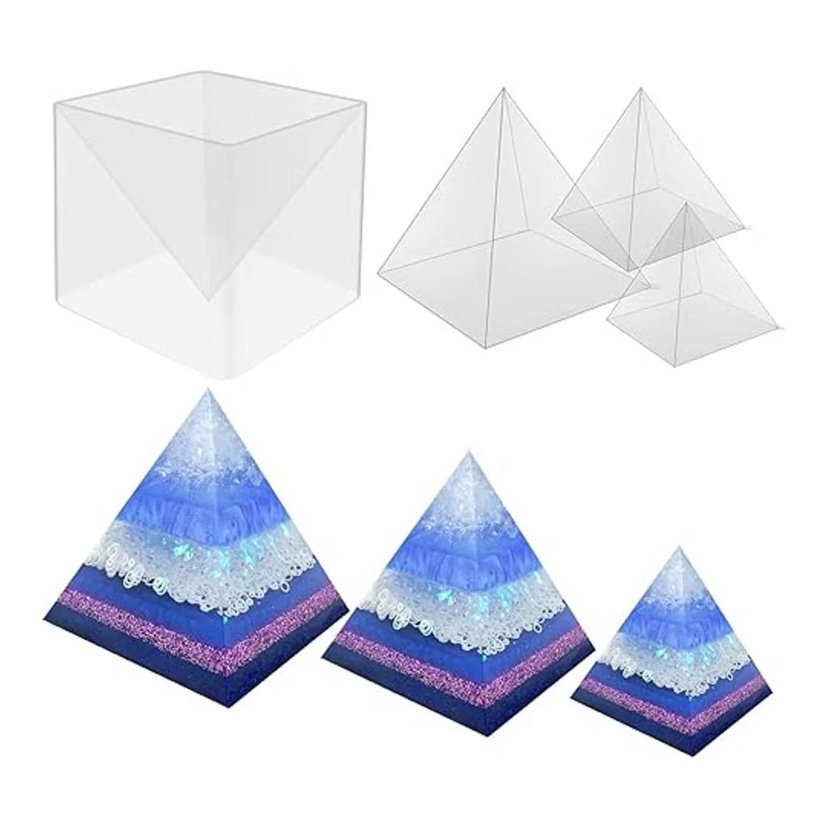 Amplia gama de aplicaciones: puedes hacer cualquier tamaño de pirámide de orgón más pequeño de 7.1 in, 5.9 in, 4.7 in. Molde de pirámide de fundición de orgón, ideal para hacer joyas de resina, pirámide de orgonita de chakras, pisapapeles u otros accesorios de manualidades para decoración del hogar.
