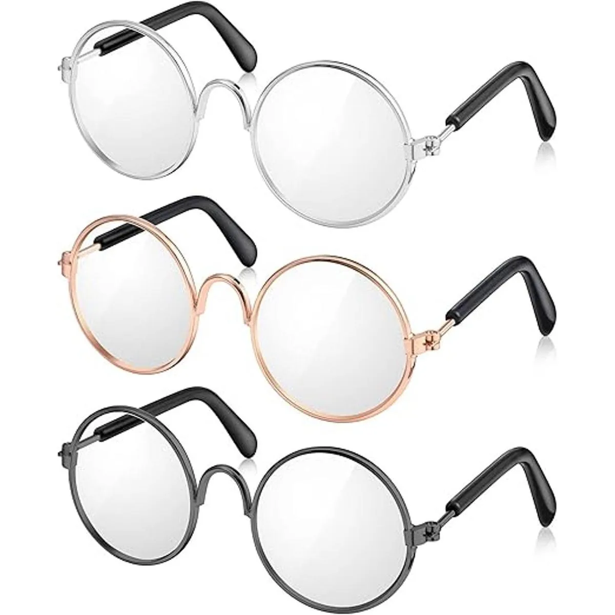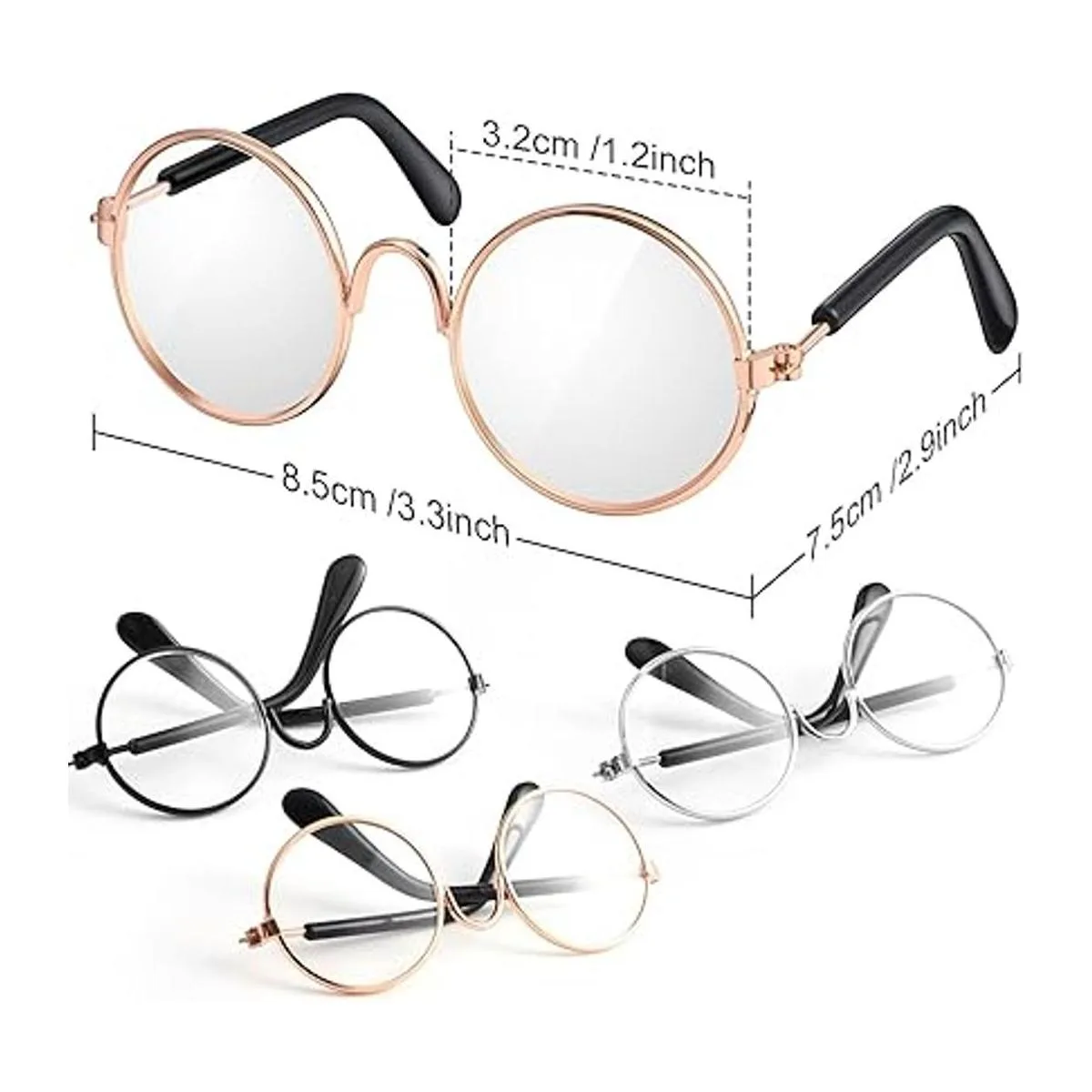 3 pares de gafas de muñeca con borde de alambre de metal, lentes transparentes, lentes de tela, mini muñecas, accesorios de disfraz para muñecas de 18 pulgadas y otros artículos 3.14 pulgadas, apto para muñecas de 18 pulgadas