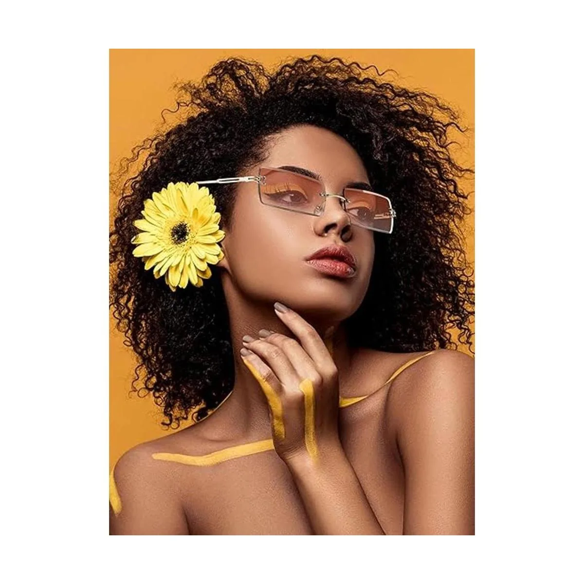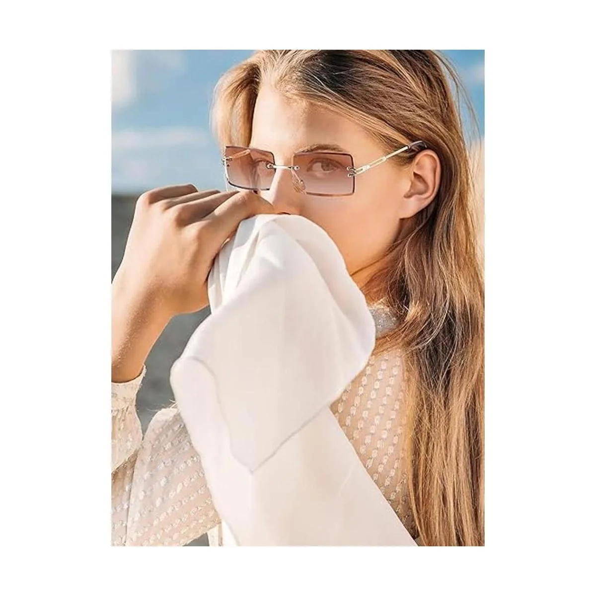 Simple y novedoso: las gafas de sol rectangulares transparentes cuentan con marco sin borde y lente tintada, a juego con patas de gafas de metal hace que se vean delicadas y elegantes, los colores clásicos y vivos pueden ir bien con tus diferentes prendas diarias y disfraces de fiesta, lo que te hace más elegante y atractiva