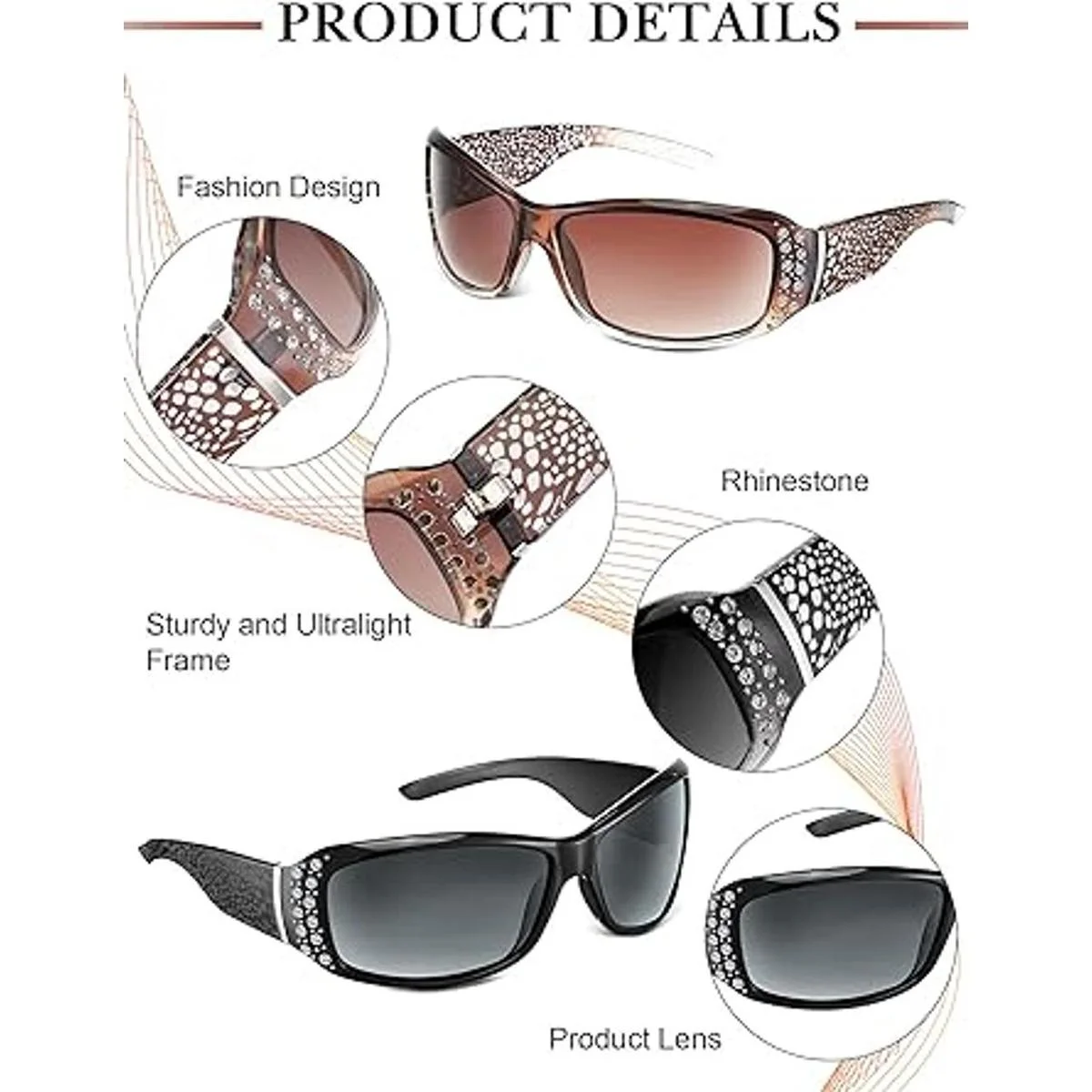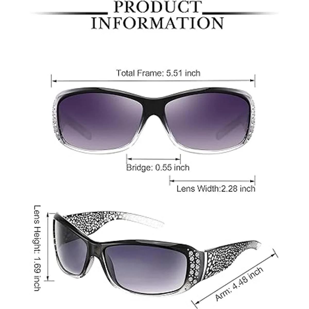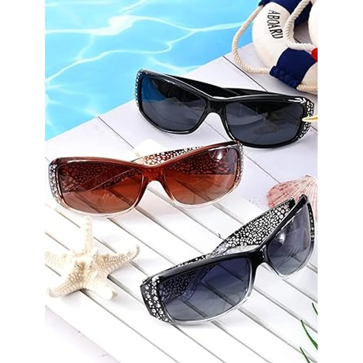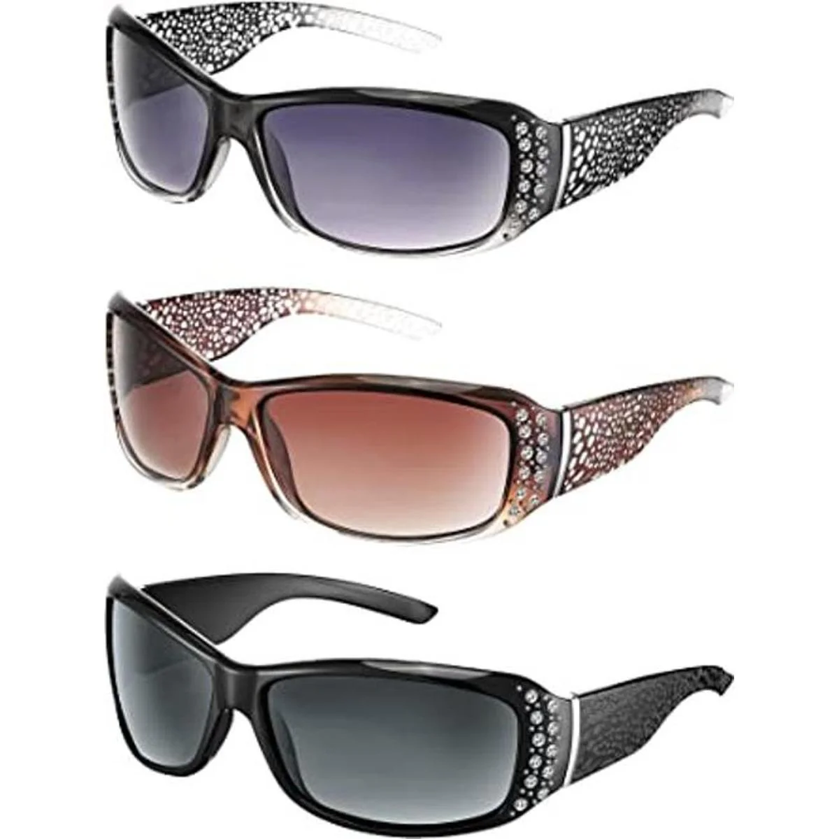 3 pares de lentes de sol retro con diamantes de imitación de gran tamaño, gafas de sol vintage para mujeres y hombres, para conducir, pescar, ir de compras, Classic BlackTrendy Brown Misterious Gradient Purple, Talla regular