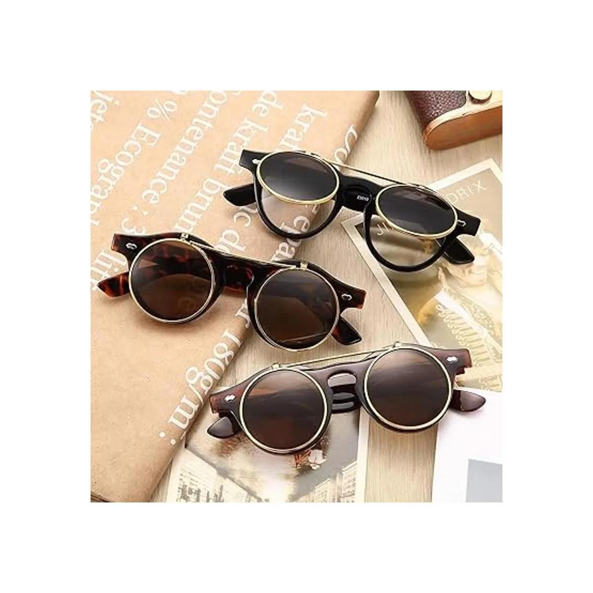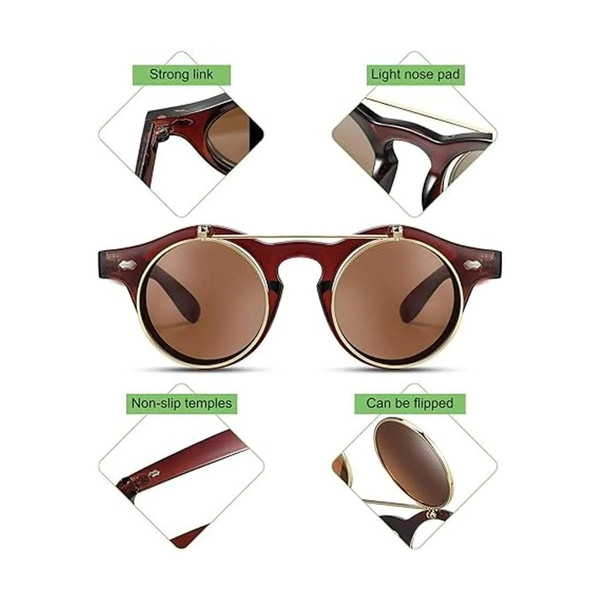 Con diseño vintage flip up y aspecto elegante, las gafas de sol redondas son excelentes accesorios para fiestas de disfraces de los años 70, 80, 90, añadiendo encanto a tu aspecto general y haciendo que destaques entre la multitud.
