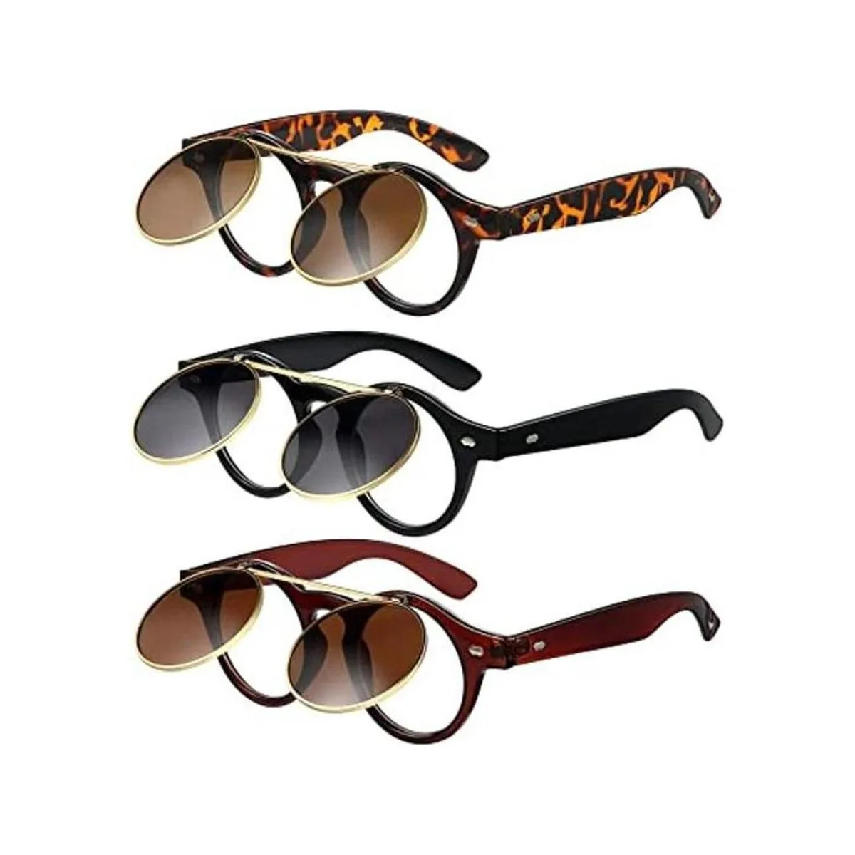 3 pares Flip Up gafas de sol retro redondas gafas steampunk gafas de sol para fiesta