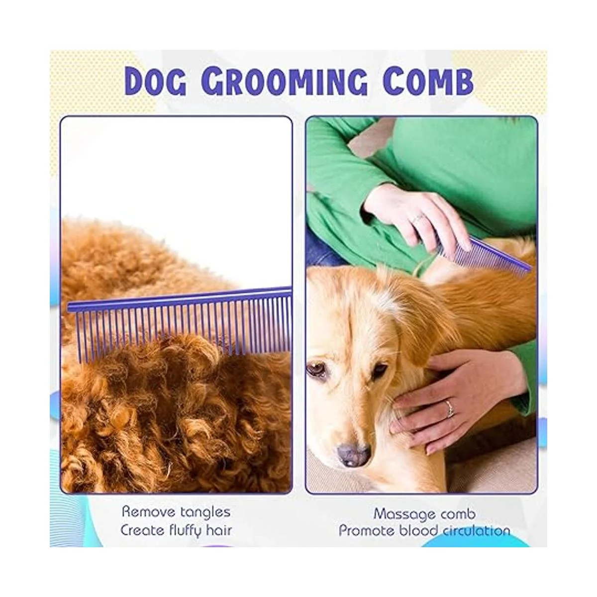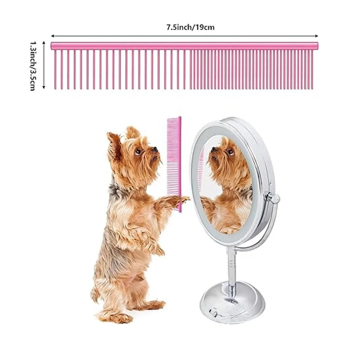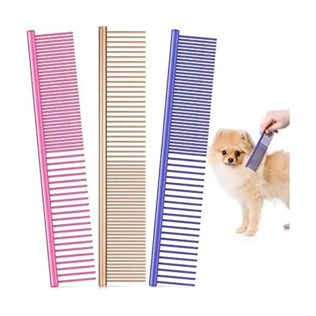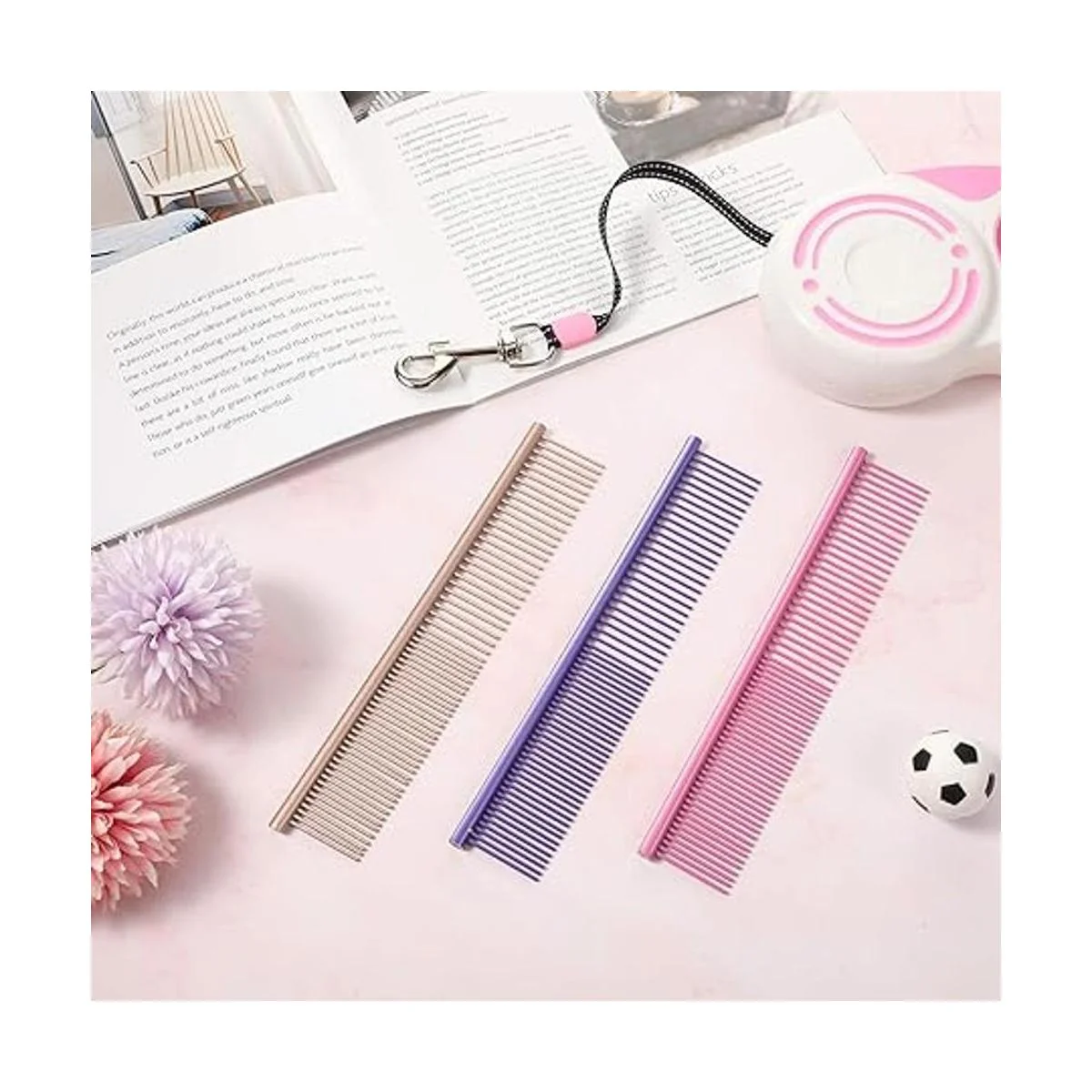 3 peines de acero para mascotas, peine de aseo para perros y gatos multicolor con dientes de acero inoxidable para eliminar enredos y nudos para perros de pelo largo y corto, 7.5 x 1.3 pulgadas