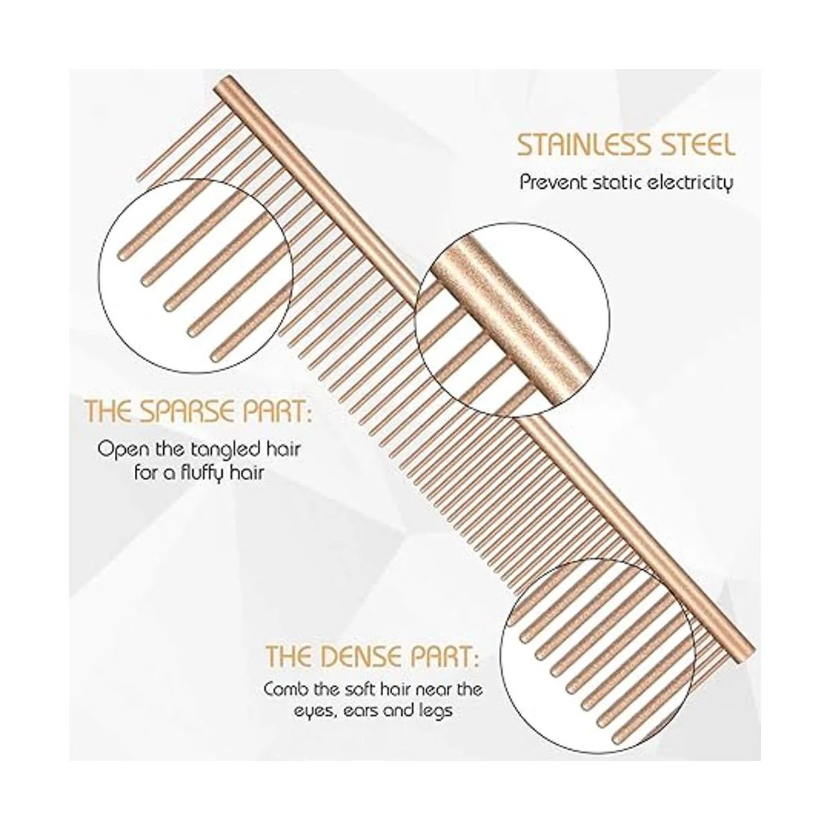 Material fiable: estos peines para mascotas están hechos de acero inoxidable, duradero, resistente a la corrosión y no se decolora fácilmente, pueden prevenir eficazmente la electricidad estática y dar a tu adorable mascota una experiencia de peinado cómoda