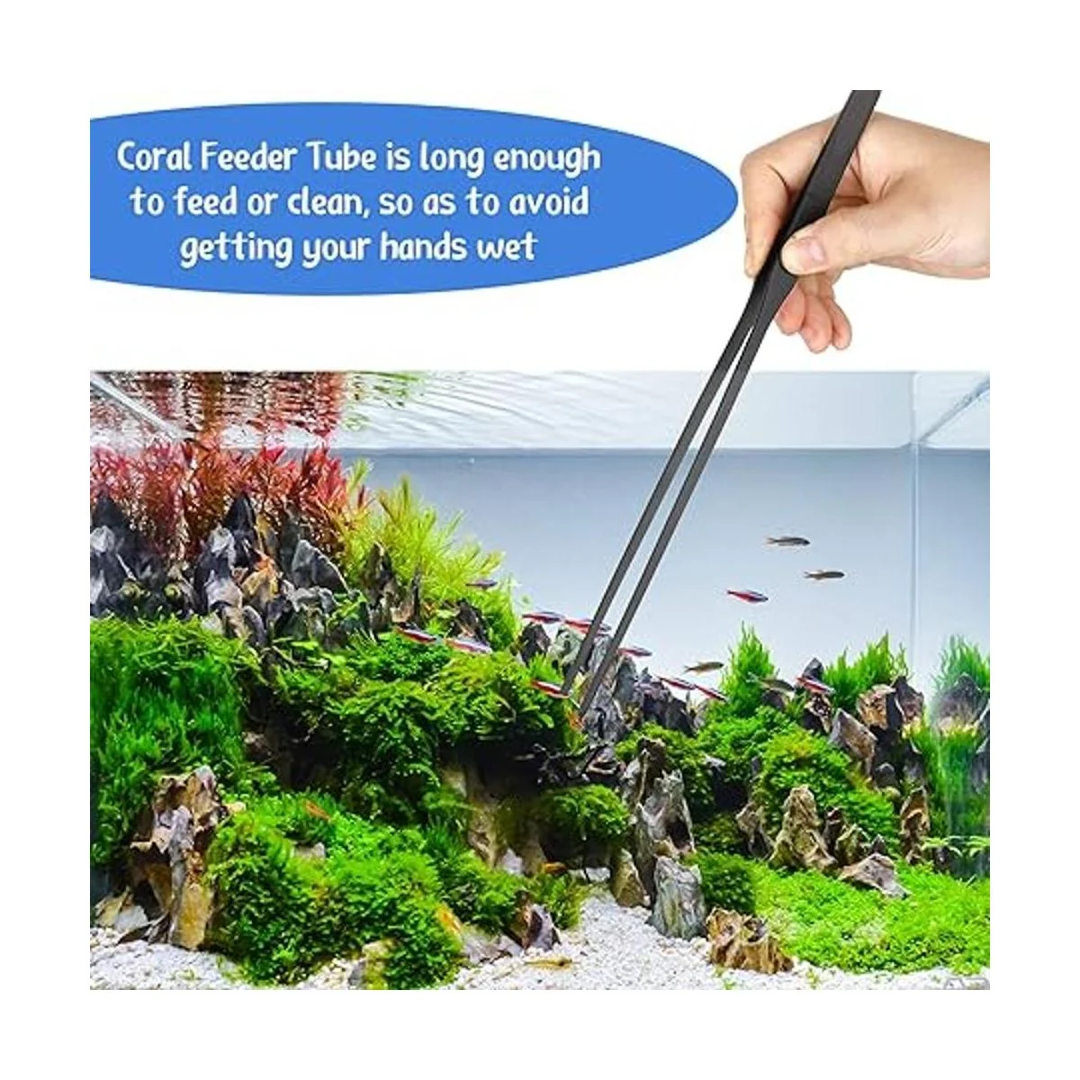 Juego de alimentación para acuario: el paquete incluye 1 tubo de alimentación de coral y 2 pinzas rectas y curvadas, buena combinación para alimentar a tus pequeñas mascotas en el agua; las pinzas rectas y curvadas de acero inoxidable pueden alimentar y limpiar el desorden dentro del tanque de peces