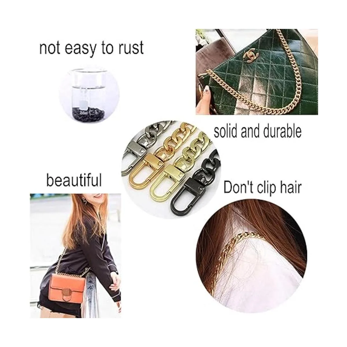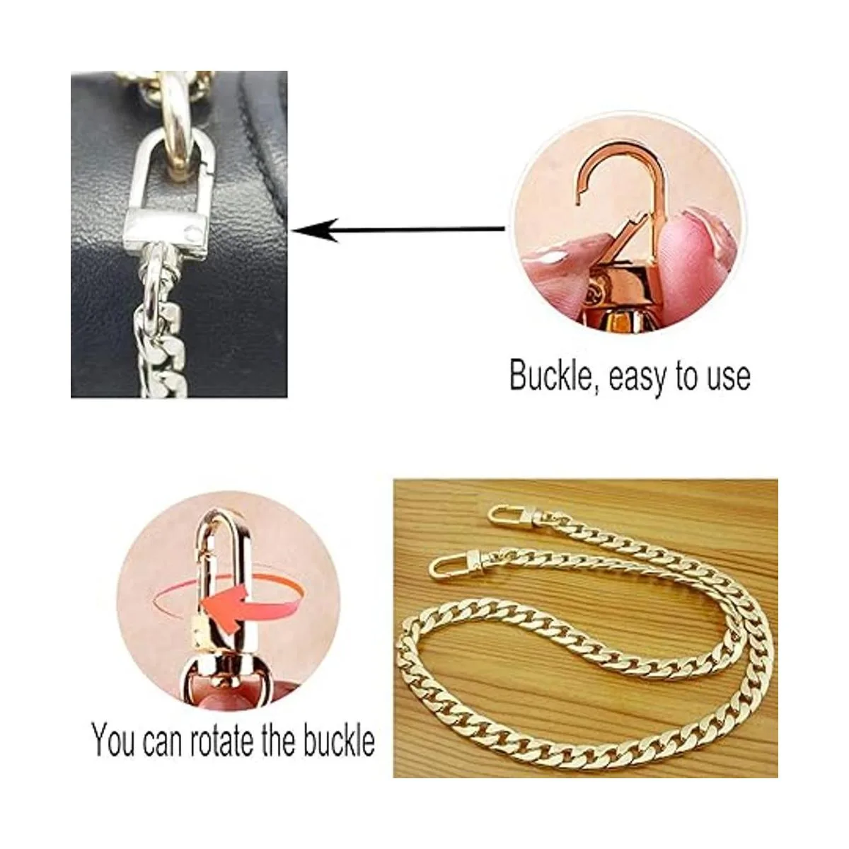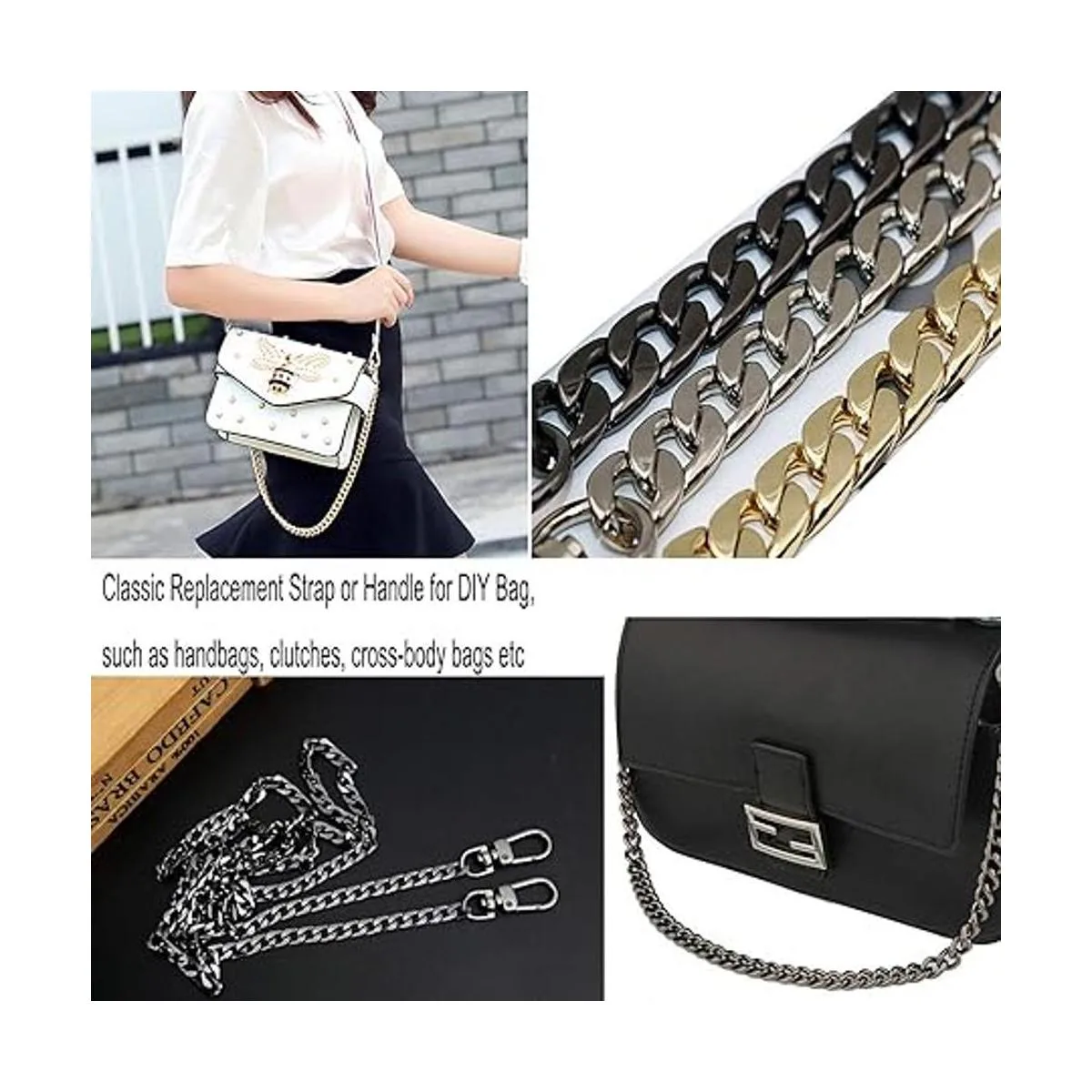 Aplicación: puedes utilizar estas cadenas para extender las cadenas originales del bolso o reemplazar las antiguas cadenas, o puedes utilizarlas en otro lugar de acuerdo a tus necesidades