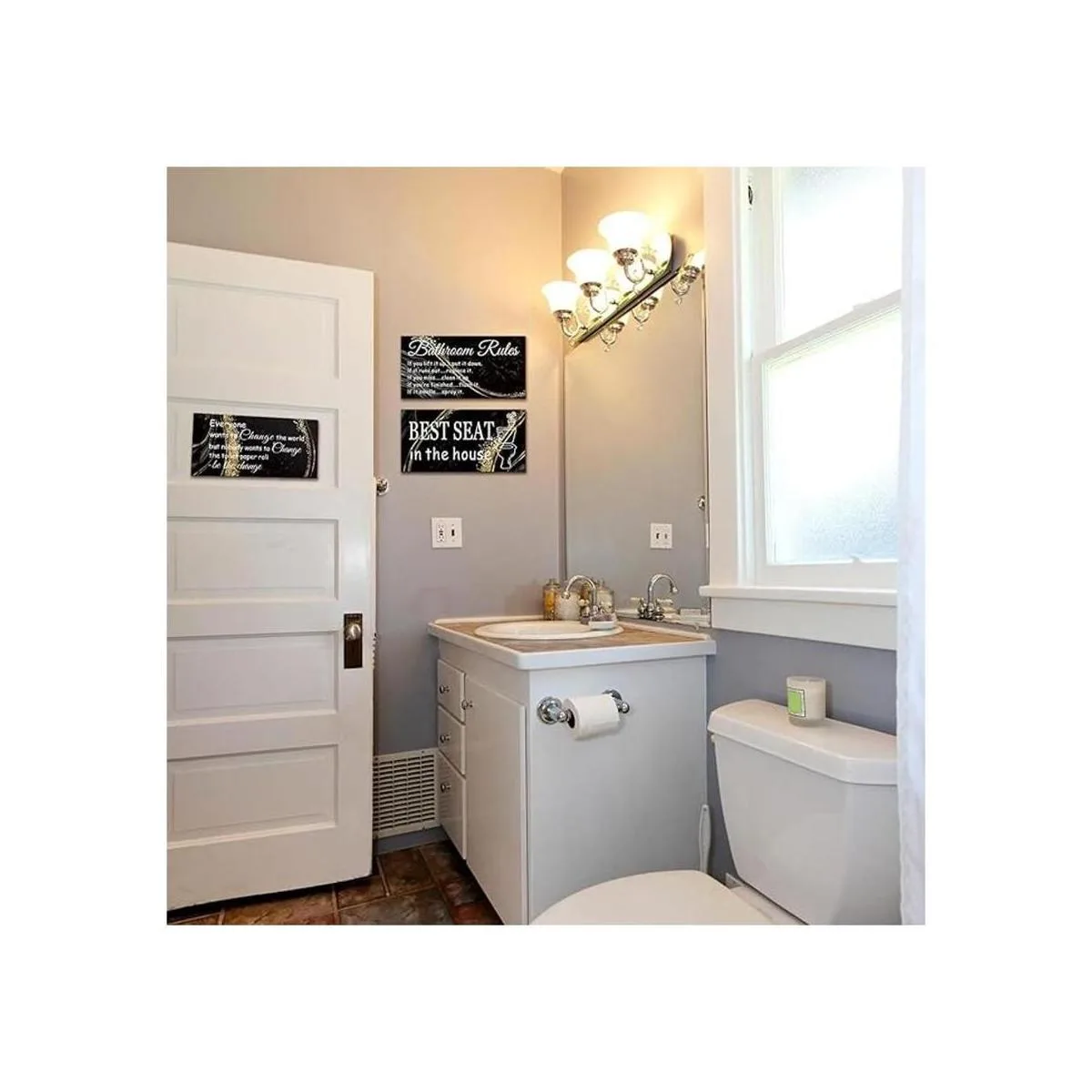 Tamaño moderado: la decoración de pared del baño mide aproximadamente 9.8 x 4.9 x 0.2 in, adecuado para colgar en la pared del inodoro, fácil de llamar la atención de la gente y dejar una impresión de baño profunda y limpia para ellos
