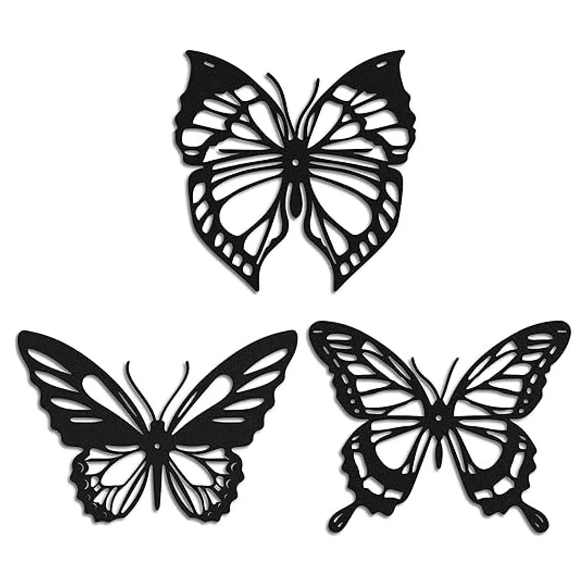 3 piezas de decoración de pared de metal de mariposa, libélula negra, colibrí, mariposa, arte de pared colgante para decoración de pared moderna de granja, rústico, hogar, sala de estar, baño, decoración interior y exterior estilo elegante