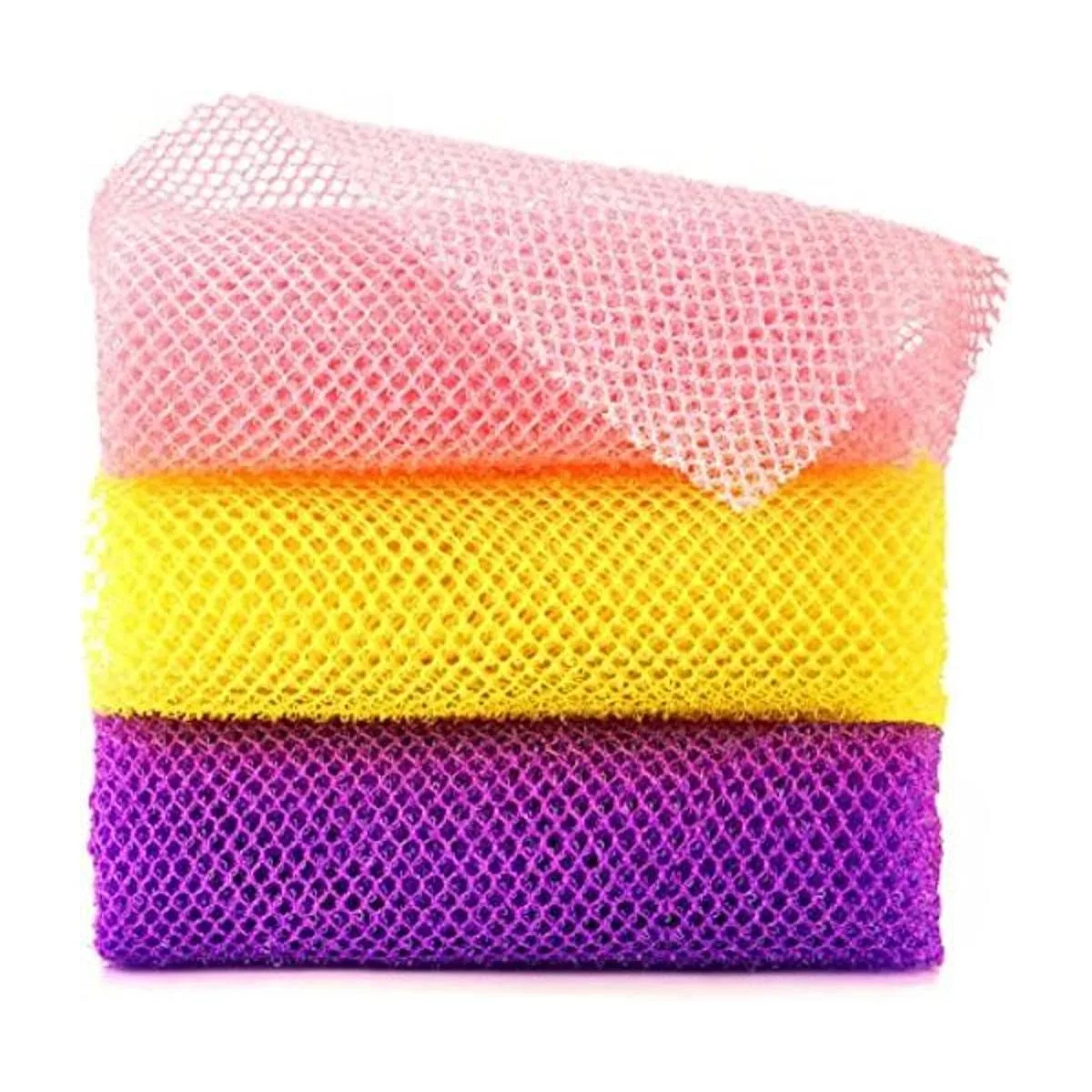 3 piezas de esponja de baño africana de red larga de red africana, esponja exfoliante para el cuerpo, limpiador de espalda y piel más suave, ideal para uso diario rosa, amarillo, morado